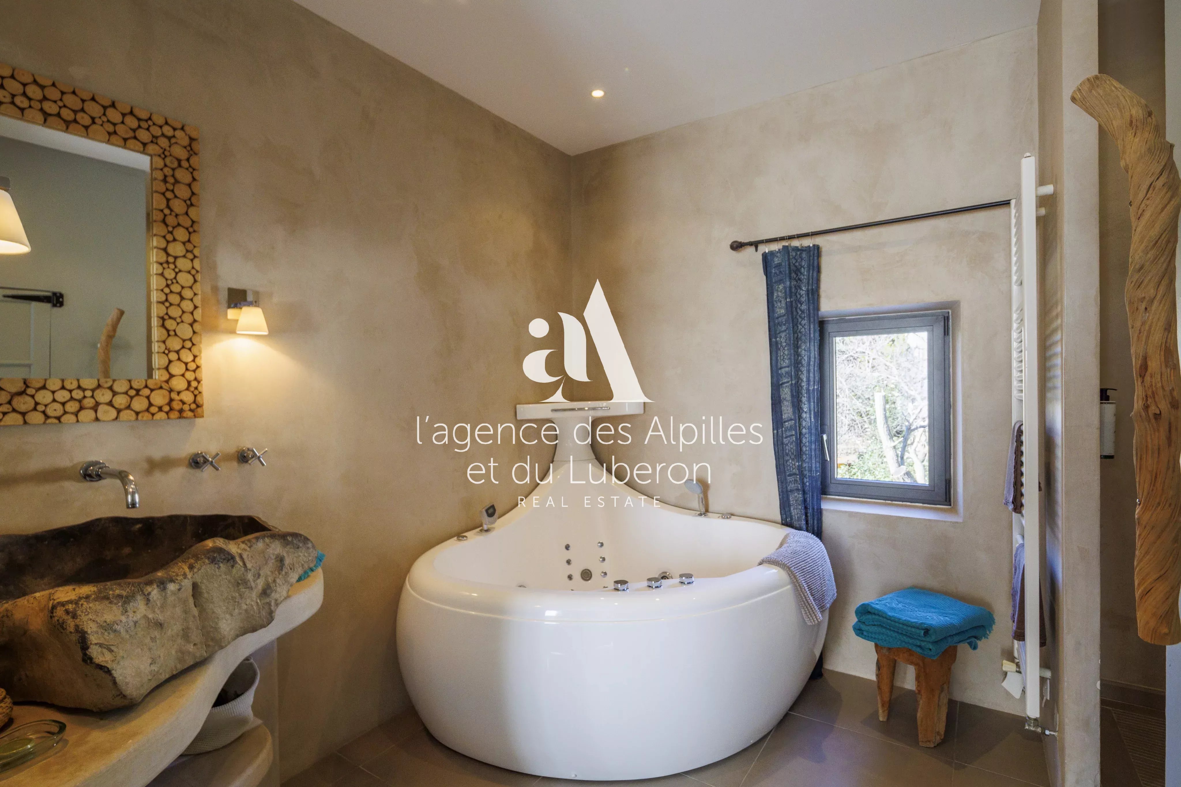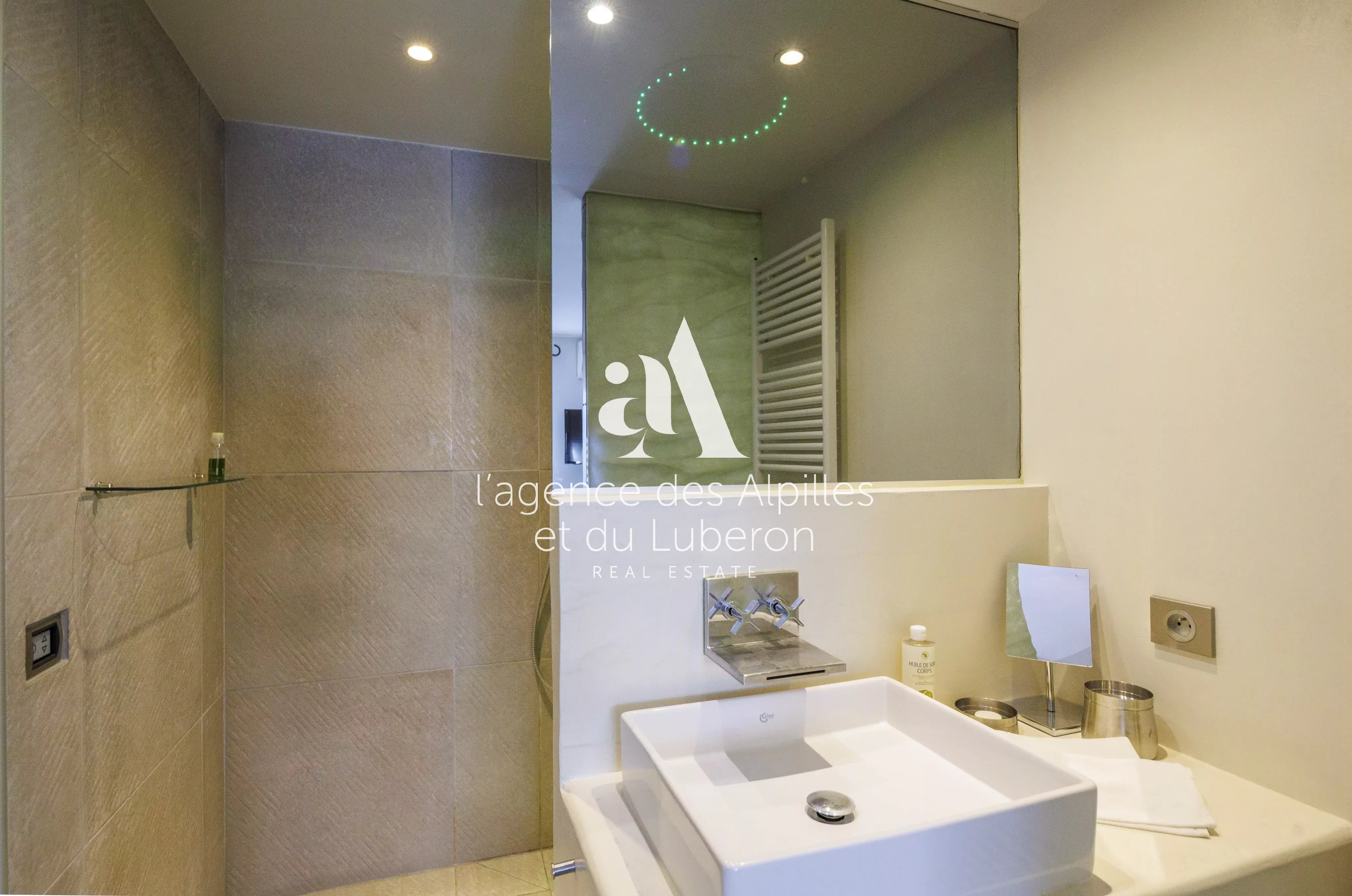 Developing around 330 m² of living space on a 1,400 m² landscaped garden, the property offers generous reception rooms: a vast dining room with stone fireplace, a living room also featuring a fireplace, as well as a fitted kitchen with scullery and linen room for optimum comfort. The first floor, mostly south-facing and opening onto the garden, also features a bedroom with en-suite shower room, as well as an exceptional wellness area with indoor pool and hammam. The whole complex opens onto a landscaped garden, a veritable oasis of greenery and freshness.