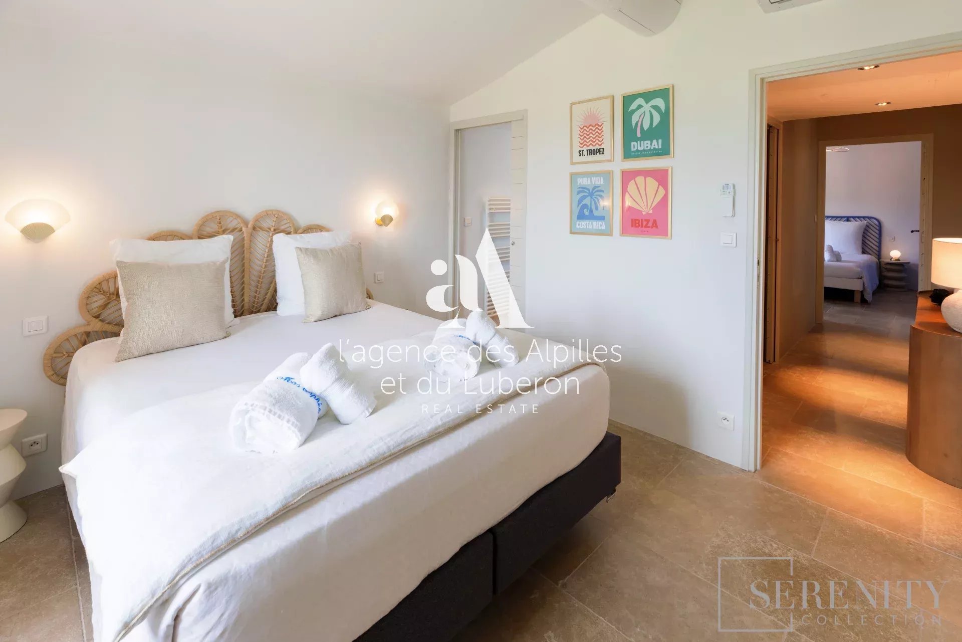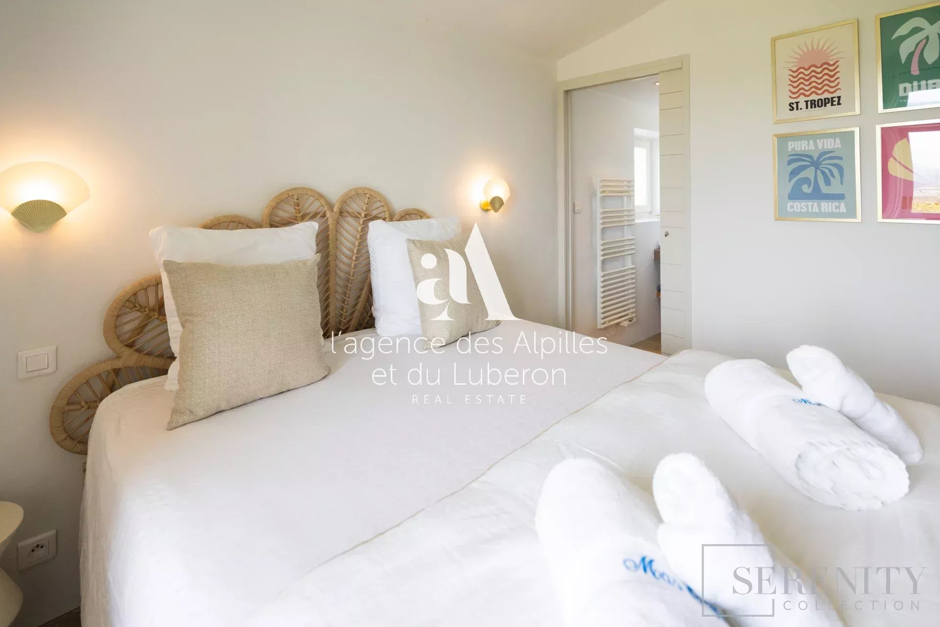 Chaque détail — du mobilier choisi avec goût aux finitions soignées — souligne un art de vivre provençal empreint de douceur et d’élégance.