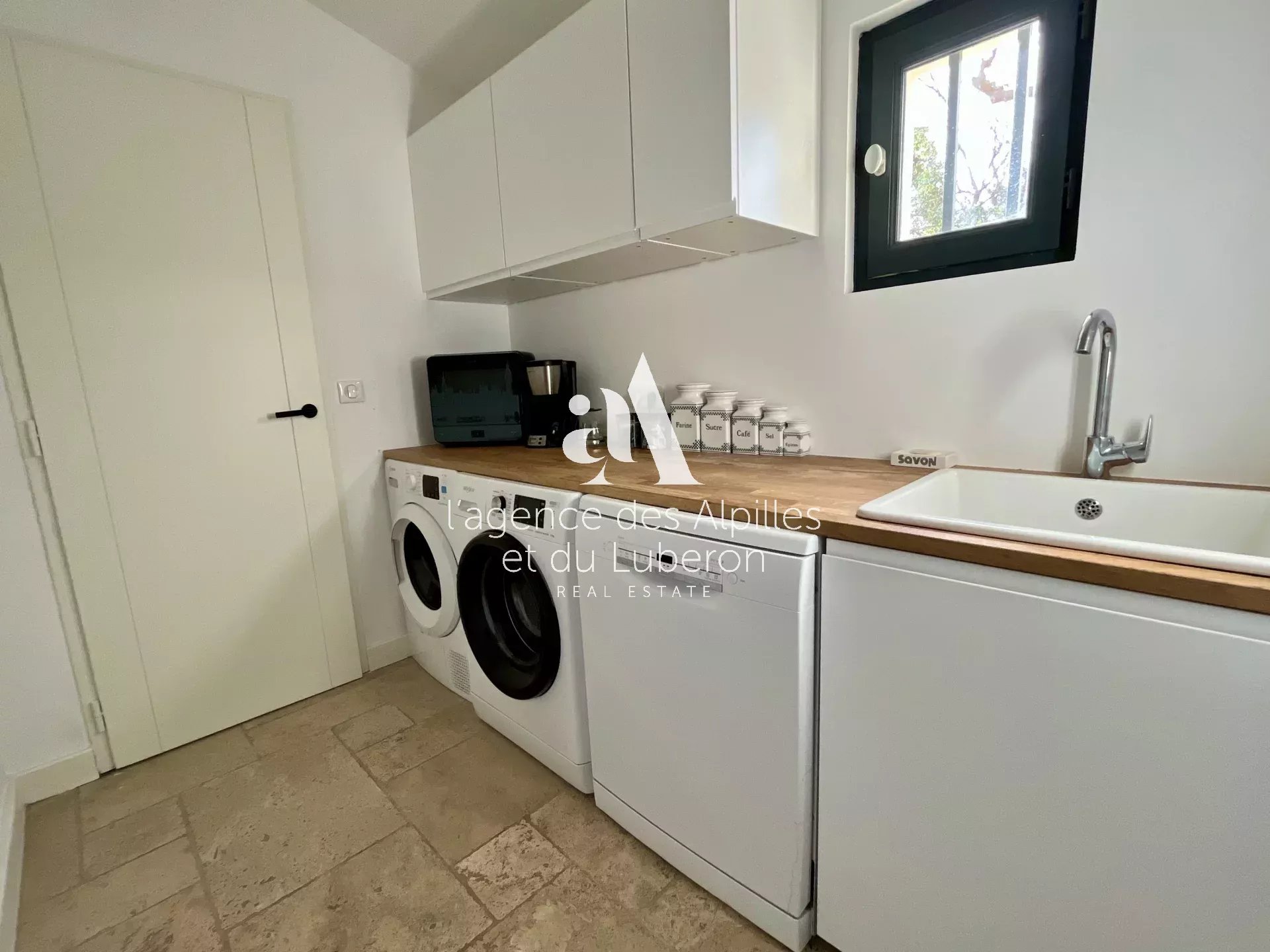 Une buanderie, arrière cuisine, avec lave-linge, sèche-linge