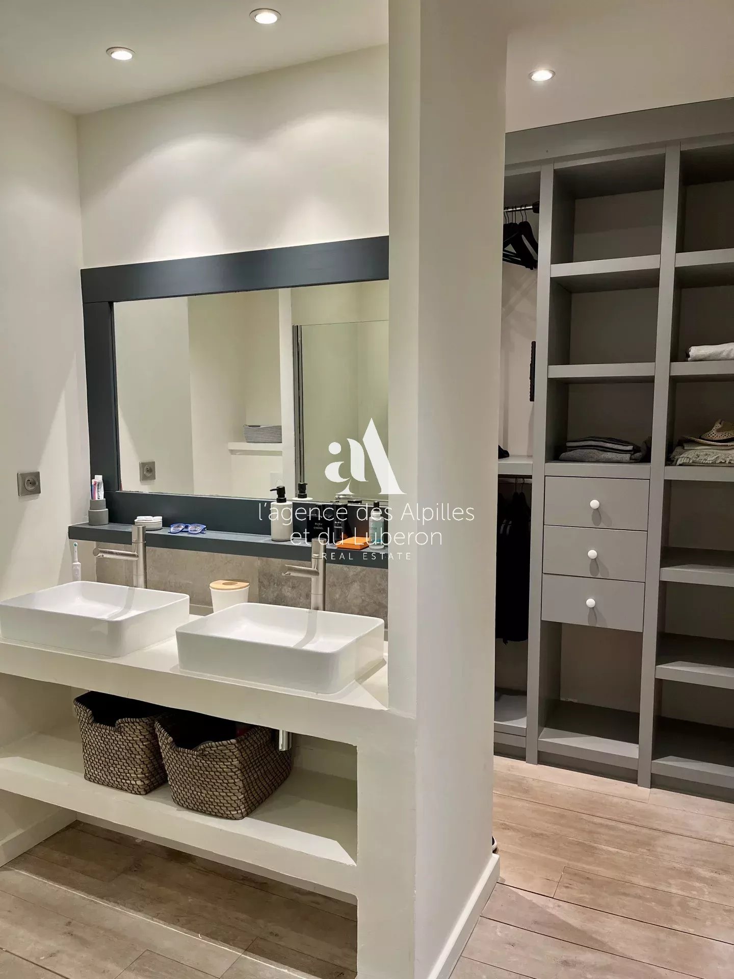 Chambre 2 : avec lit double king-size (180x200), ou deux lits simples selon préférence, dressing, terrasse privée et salle de bain attenante avec douche, lavabo et WC.