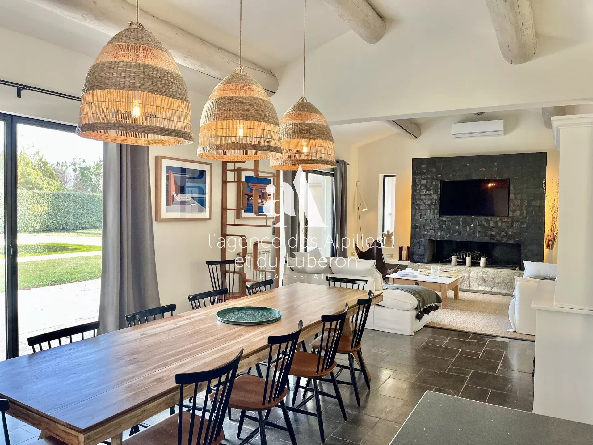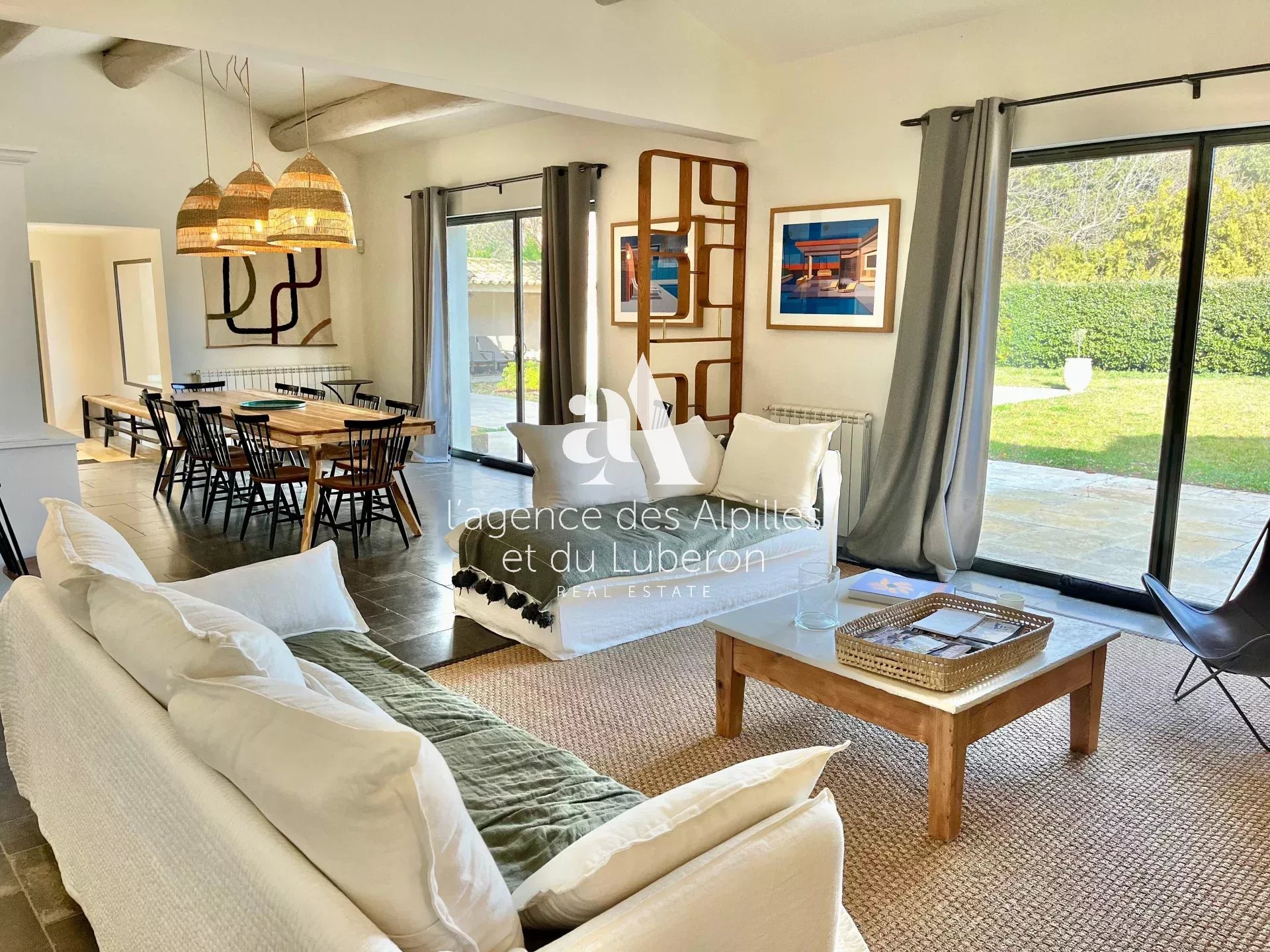 Cet espace entier bénéficie d'un accès direct au jardin par de larges baies vitrées.