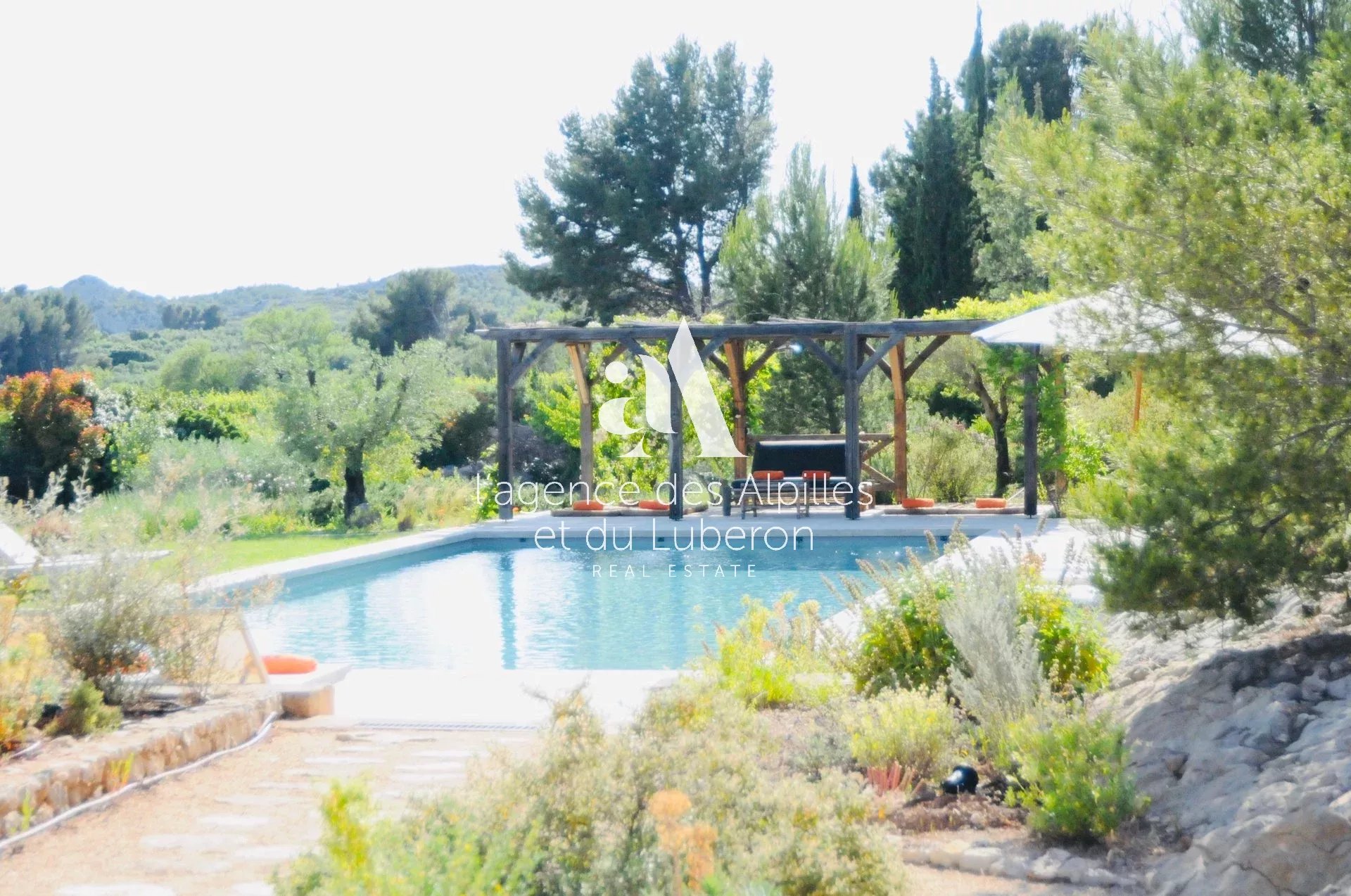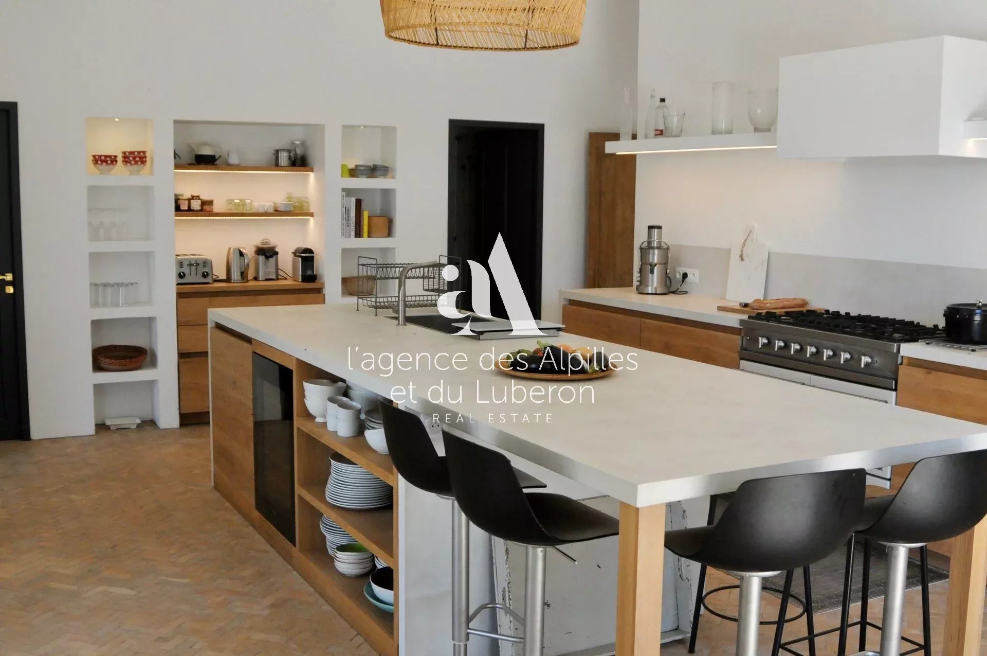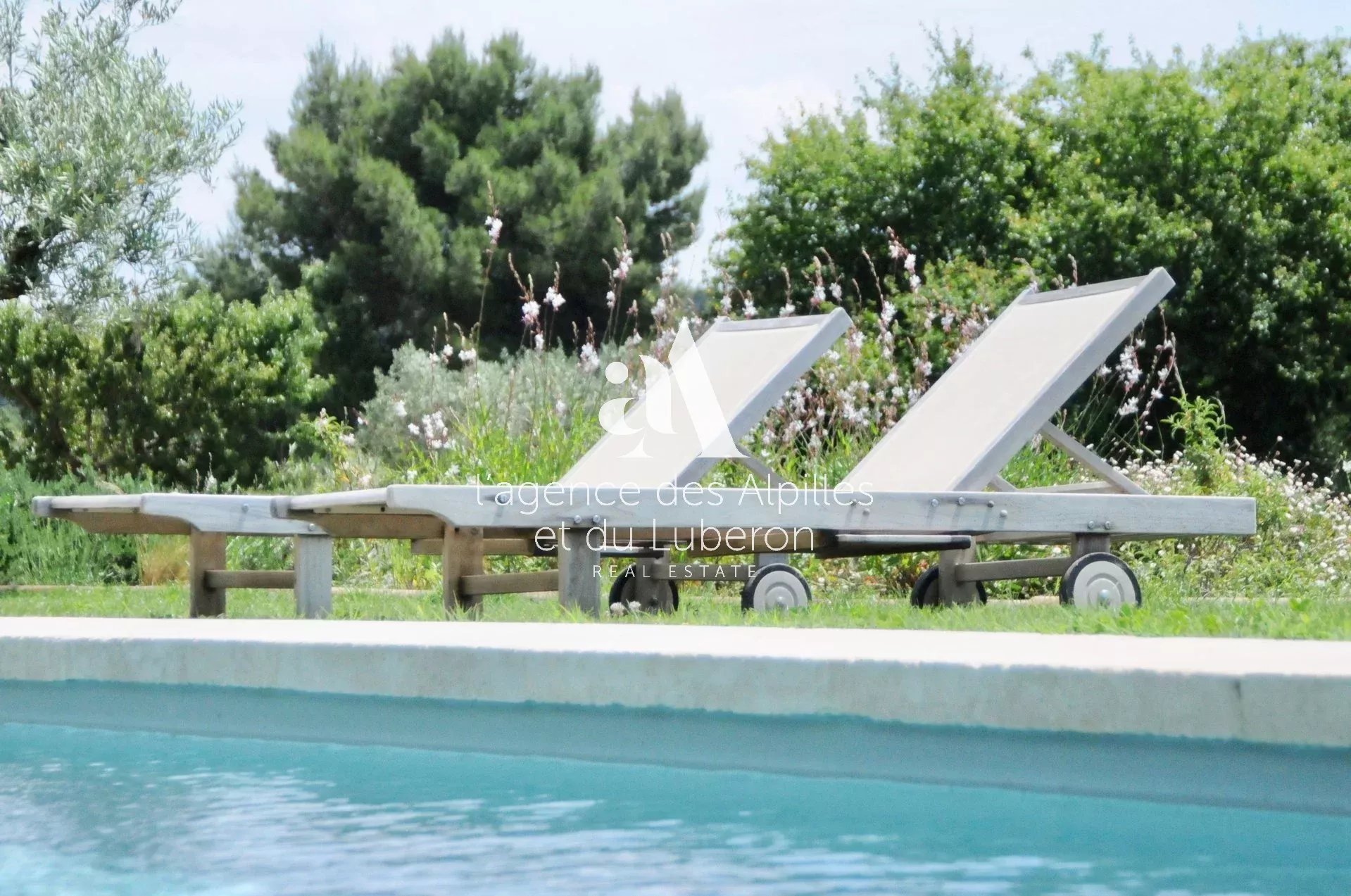 La piscine de 15x5 chauffée sécurisée par un volet électrique est au sel. Une très belle cuisine équipée, donnant accès à une très grande terrasse ombragée offrant un espace dînatoire pour 14 personnes, d'un espace salon confortable. La vue sur les Alpilles.