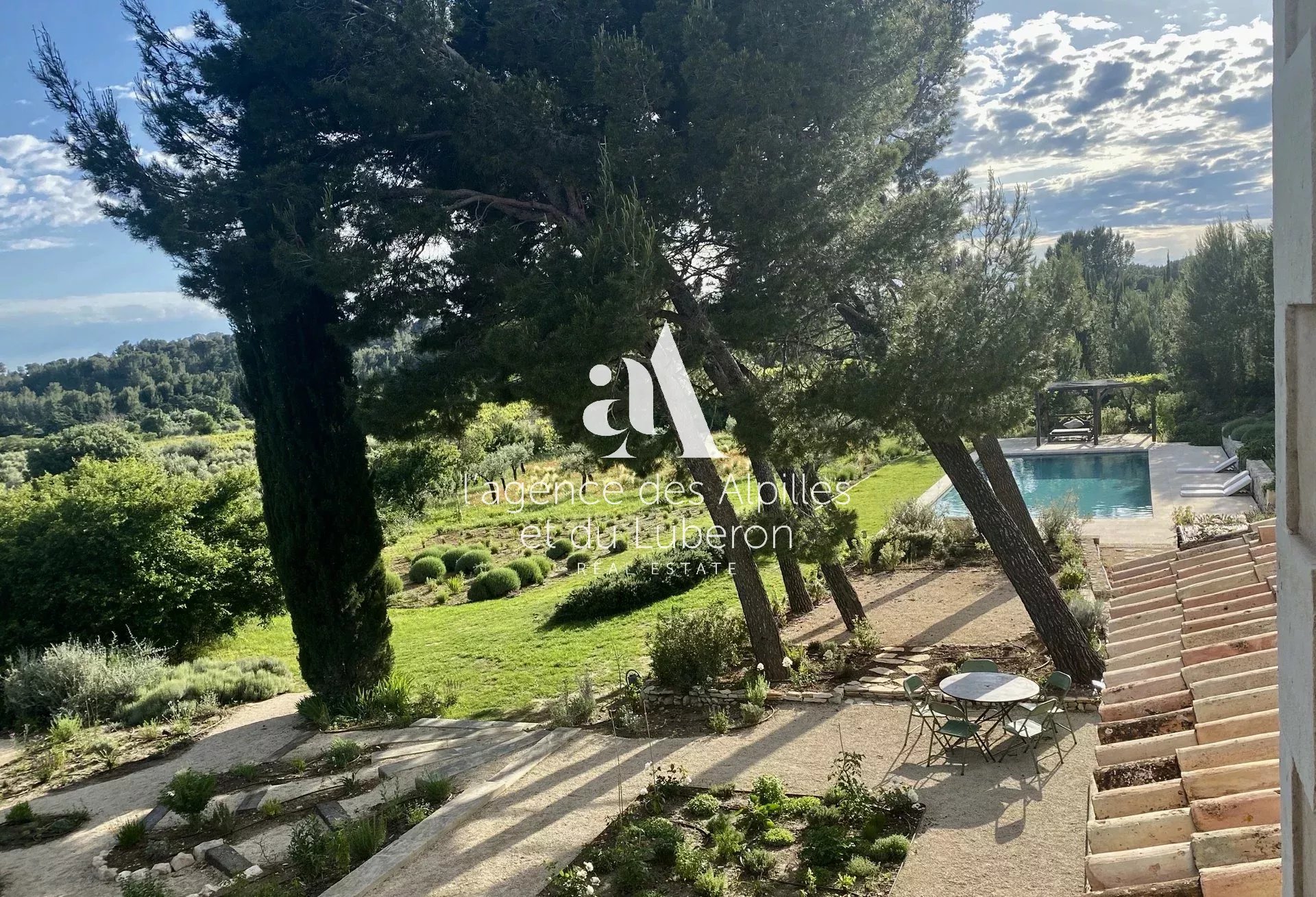 A quelques minutes du centre du village de Maussane-les-Alpilles, située dans un environnement unique face au massif des Alpilles et bénéficiant d’une vue exceptionnelle, cette magnifique propriété de 350 m2 est implantée sur 2 hectares dont 1 hectare clos. Baignée d’essences méditerranéennes, de lavandes, d’herbes aromatiques et d’oliviers, elle associe le charme du mas Provençal au confort moderne.
