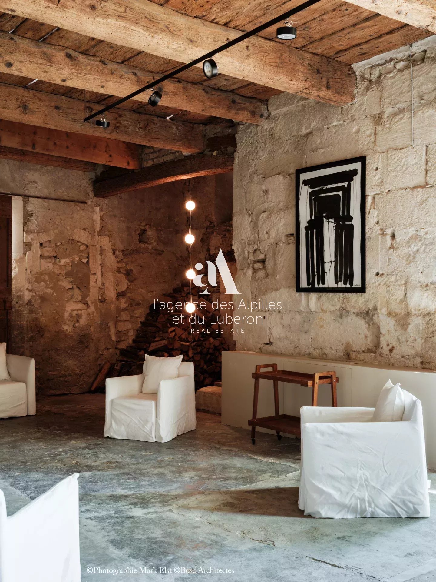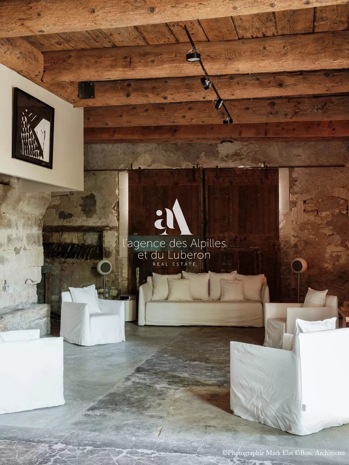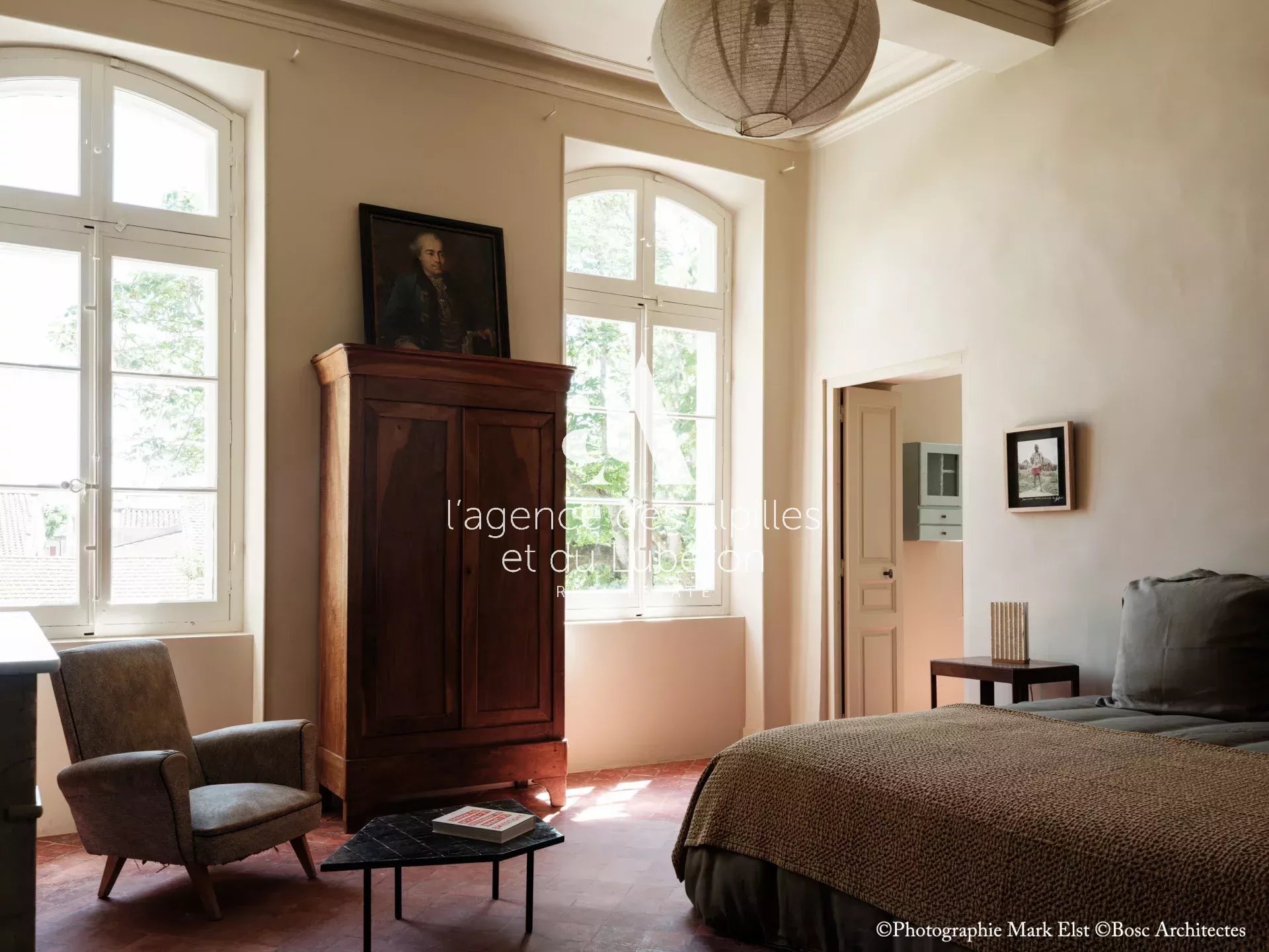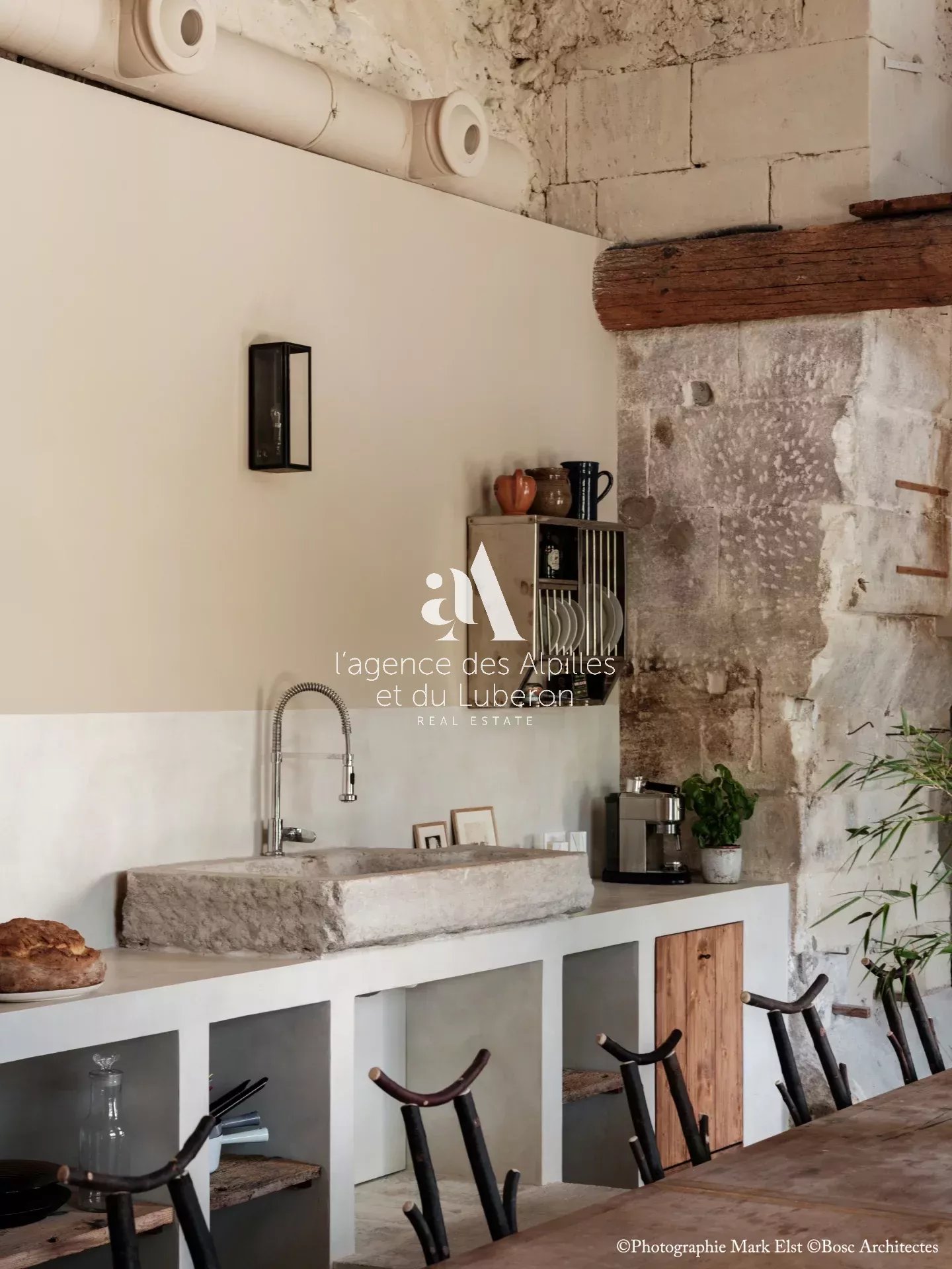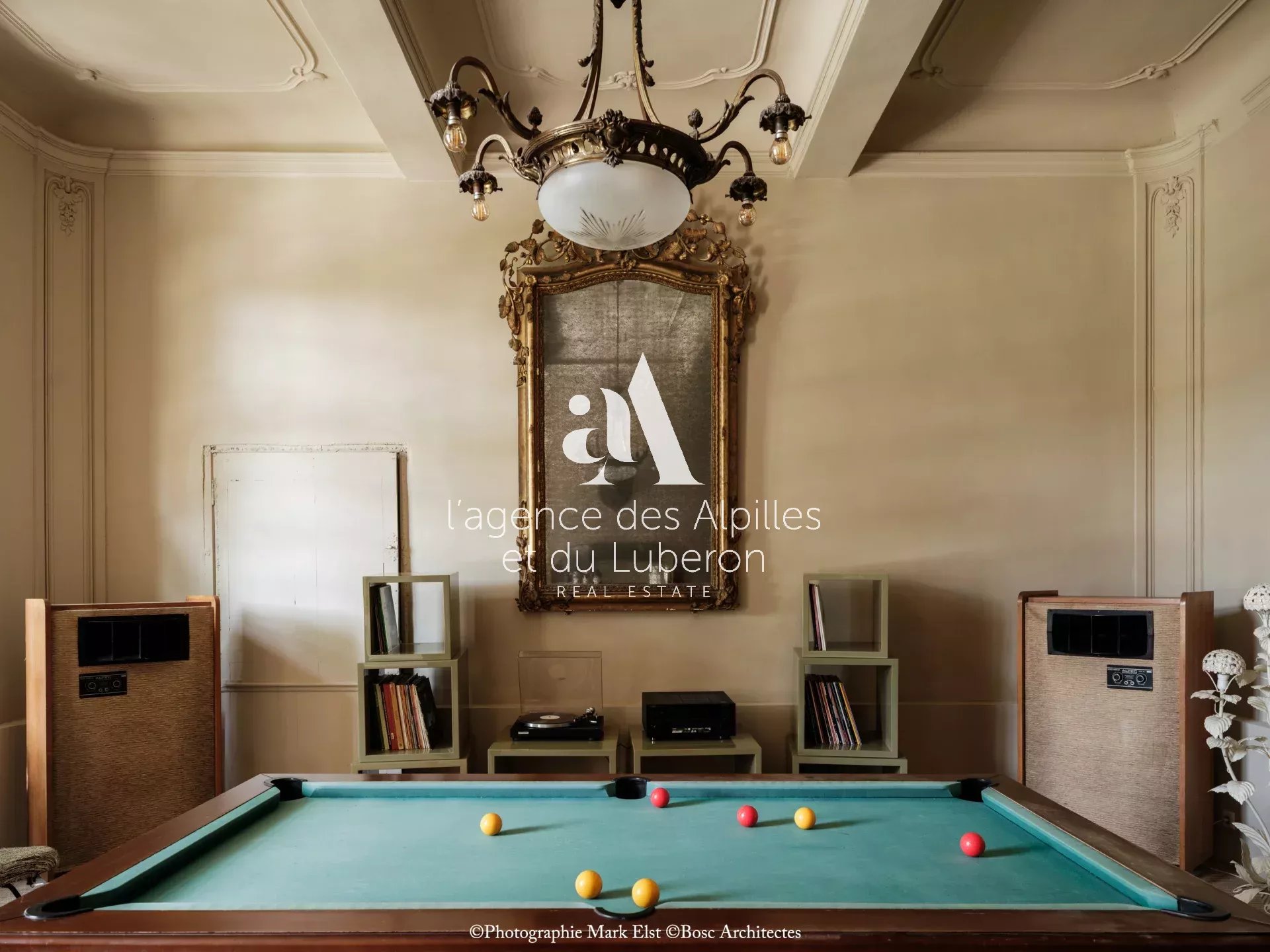 La bastide se compose de 8 chambres, 7 salles de bains, 3 salons dont un salon billard, ainsi qu'une cuisine exceptionnelle en double hauteur pour faire des banquets avec une partie cheminée dans laquelle il est possible de cuisiner au feu.