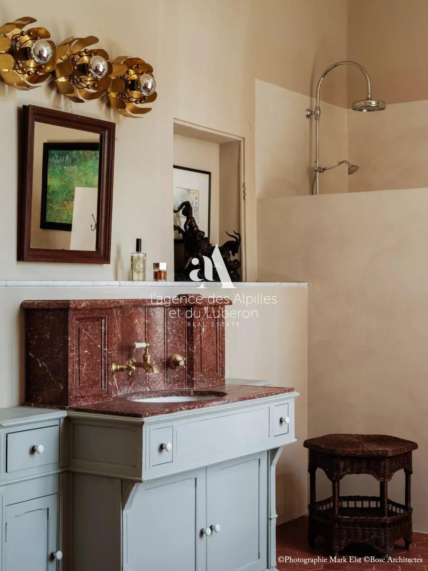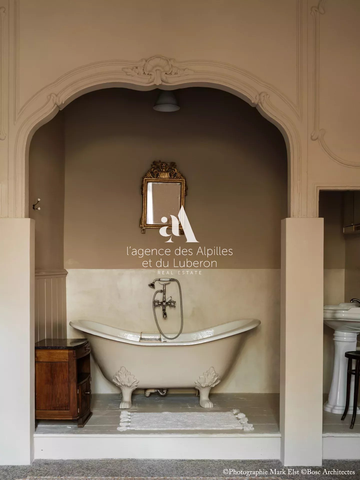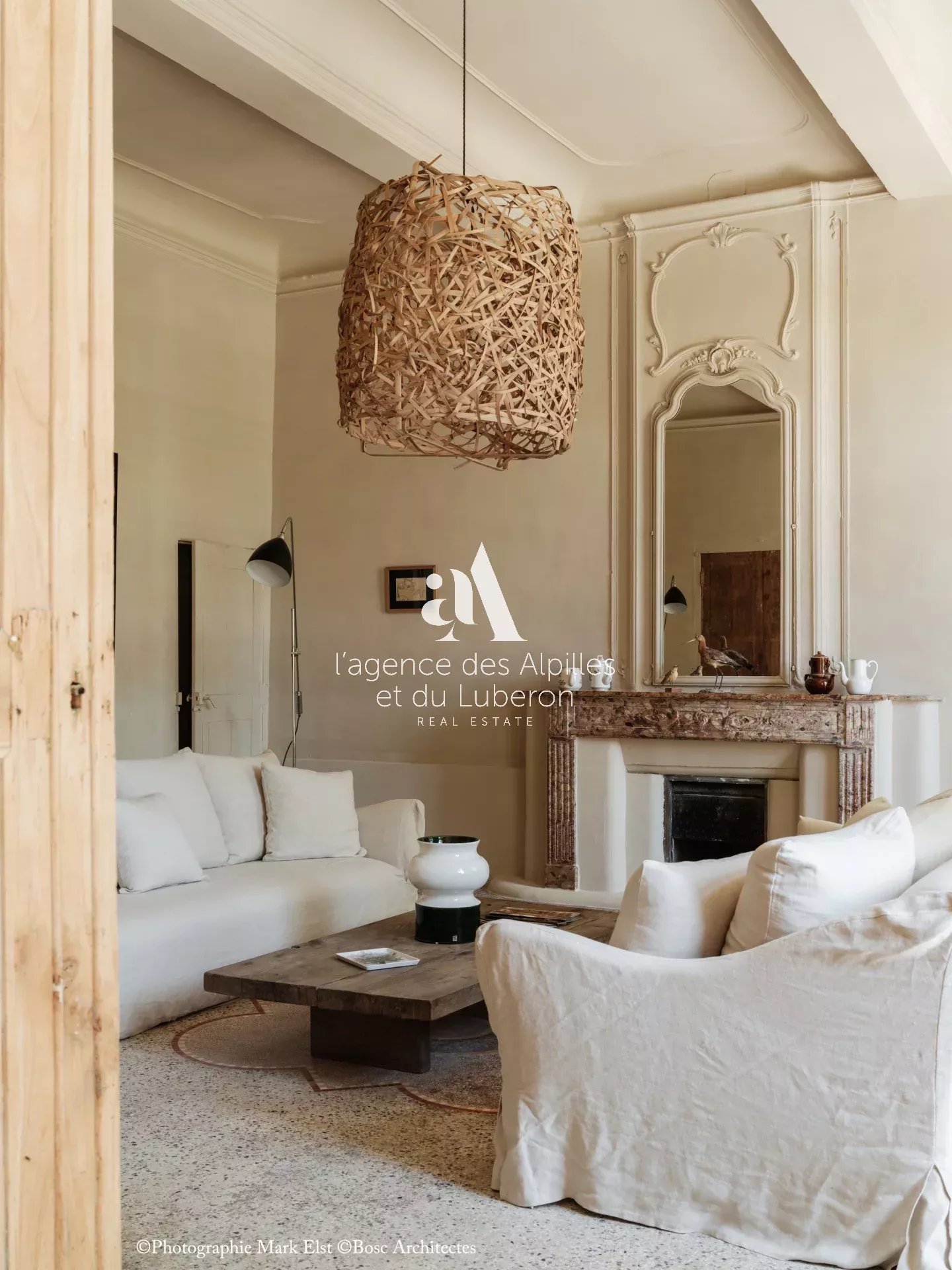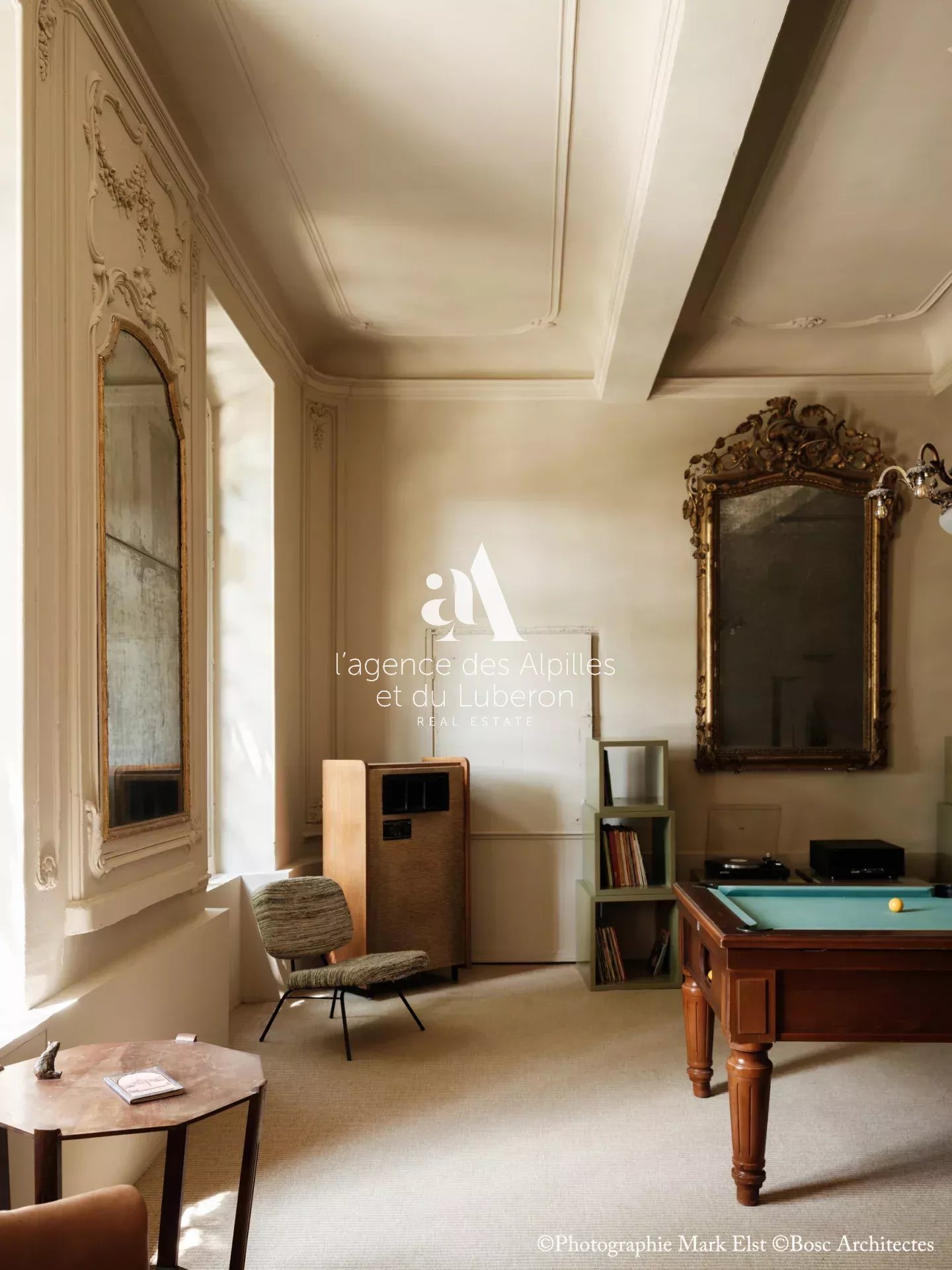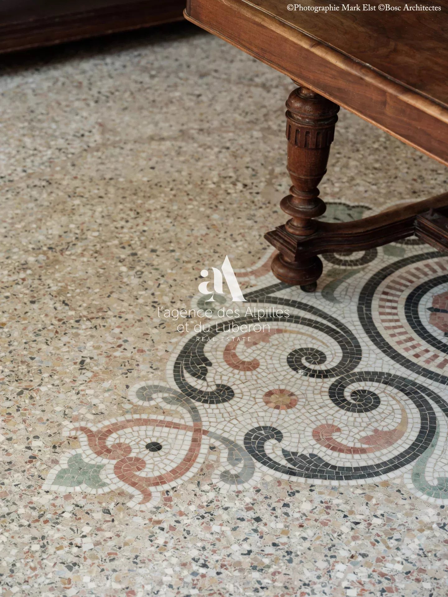 La bastide se compose de 8 chambres, 7 salles de bains, 3 salons dont un salon billard, ainsi qu'une cuisine exceptionnelle en double hauteur pour faire des banquets avec une partie cheminée dans laquelle il est possible de cuisiner au feu.