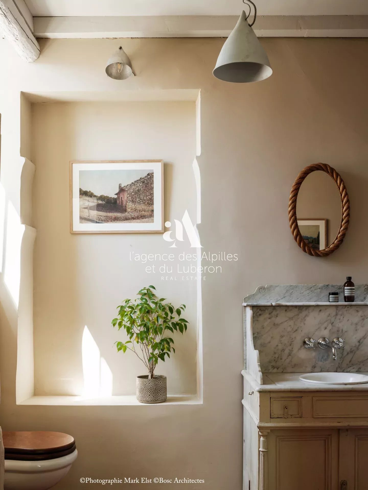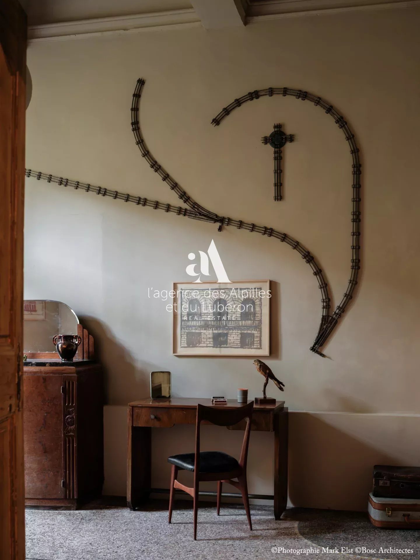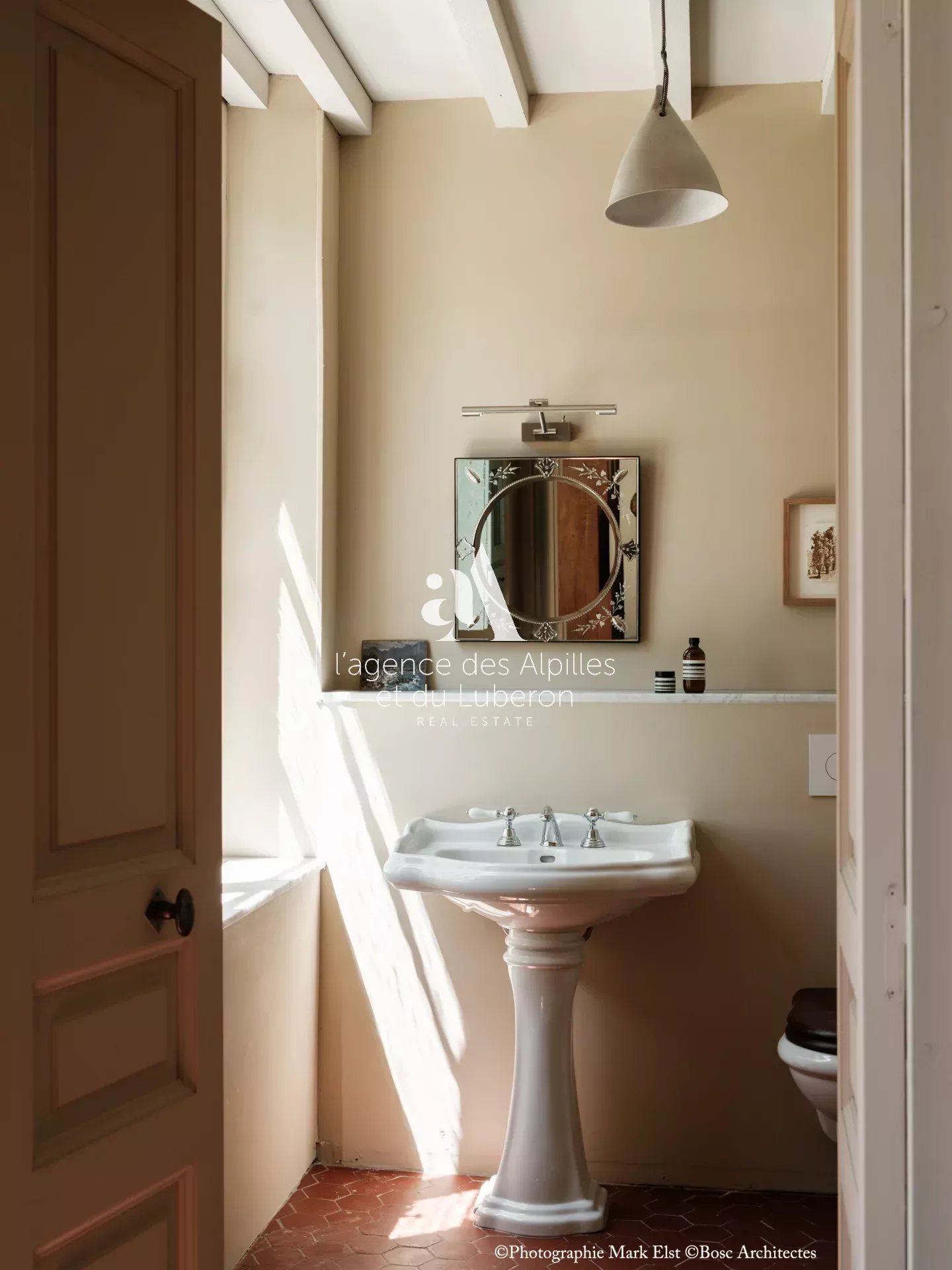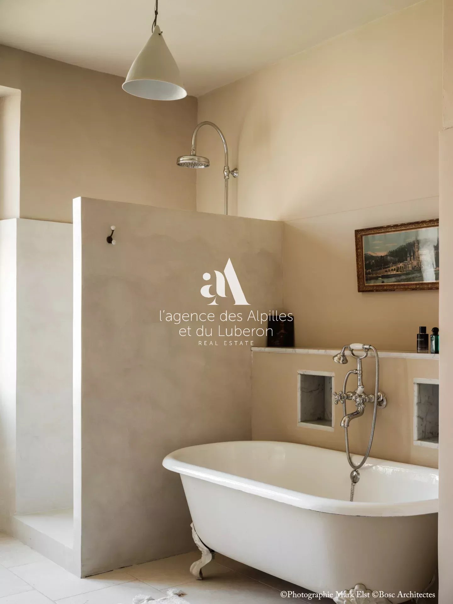 La bastide se compose de 8 chambres, 7 salles de bains, 3 salons dont un salon billard, ainsi qu'une cuisine exceptionnelle en double hauteur pour faire des banquets avec une partie cheminée dans laquelle il est possible de cuisiner au feu.