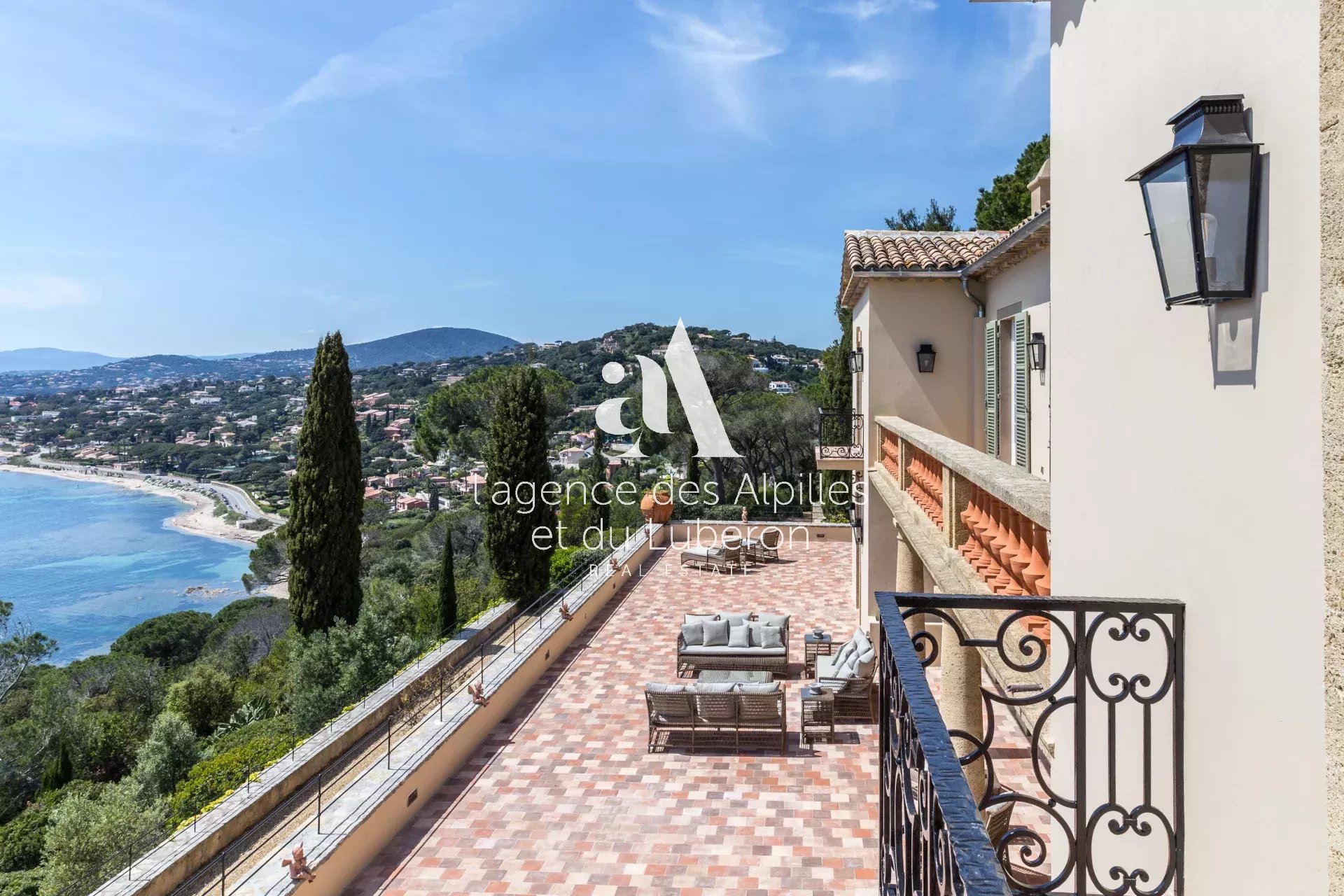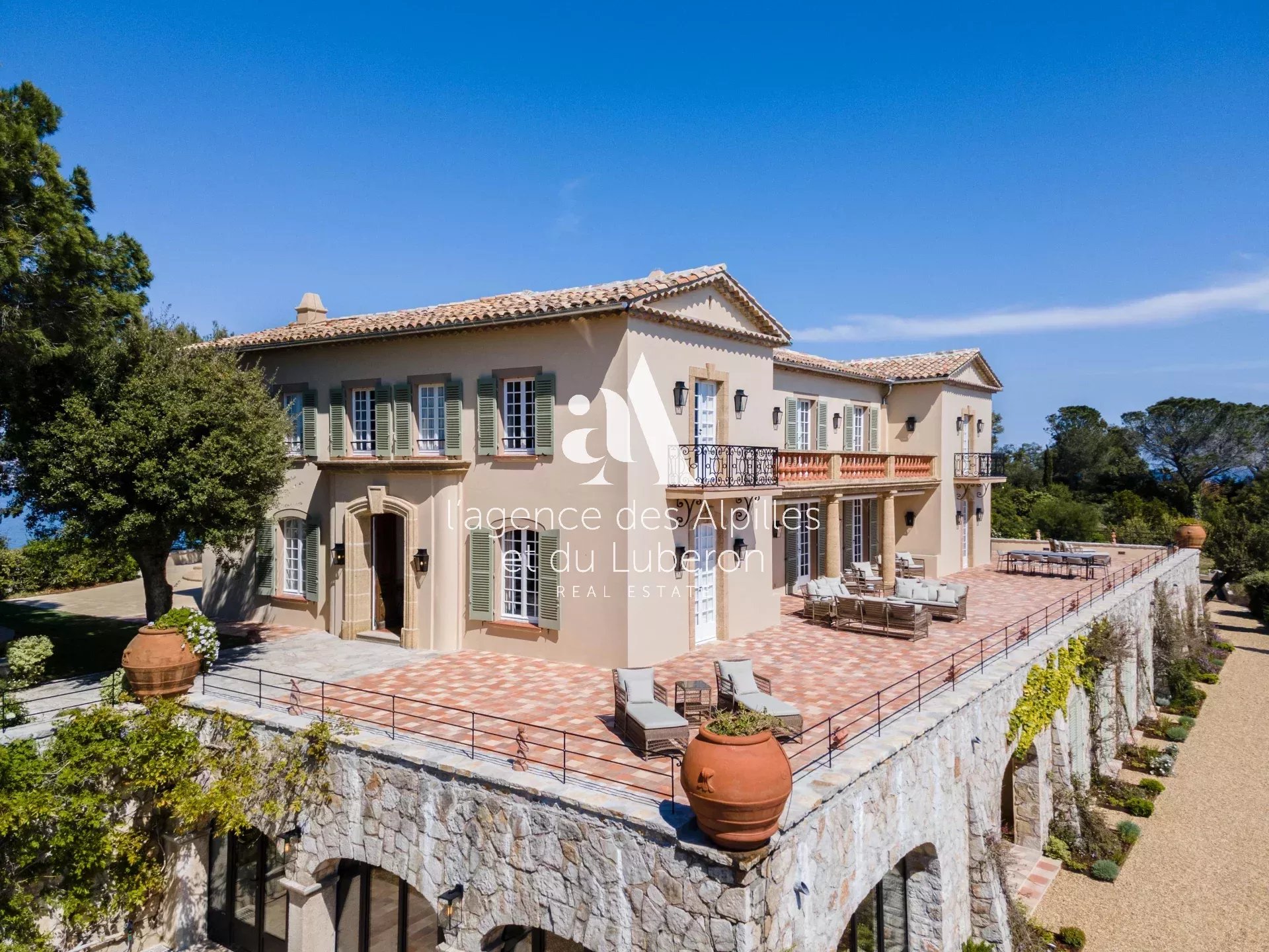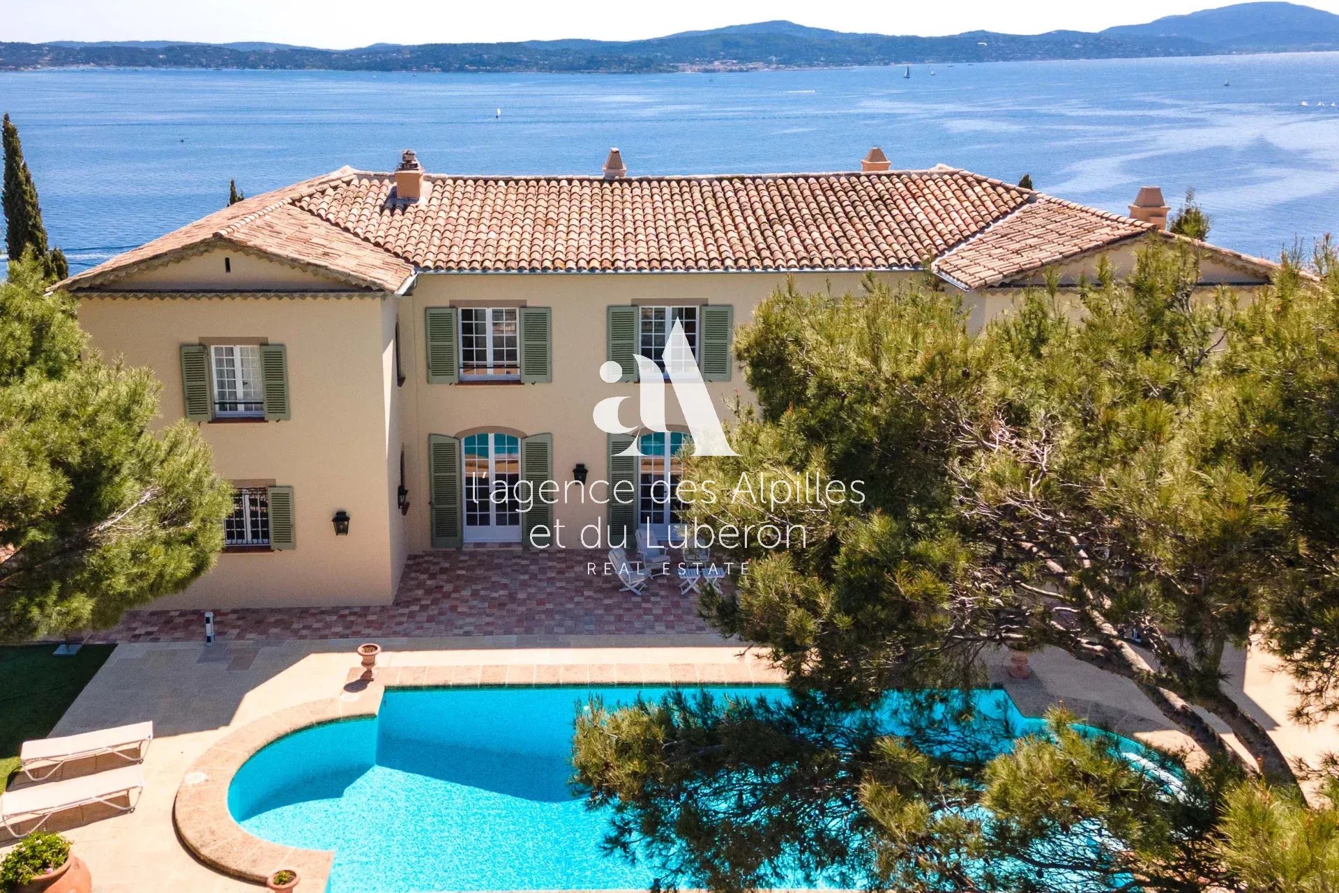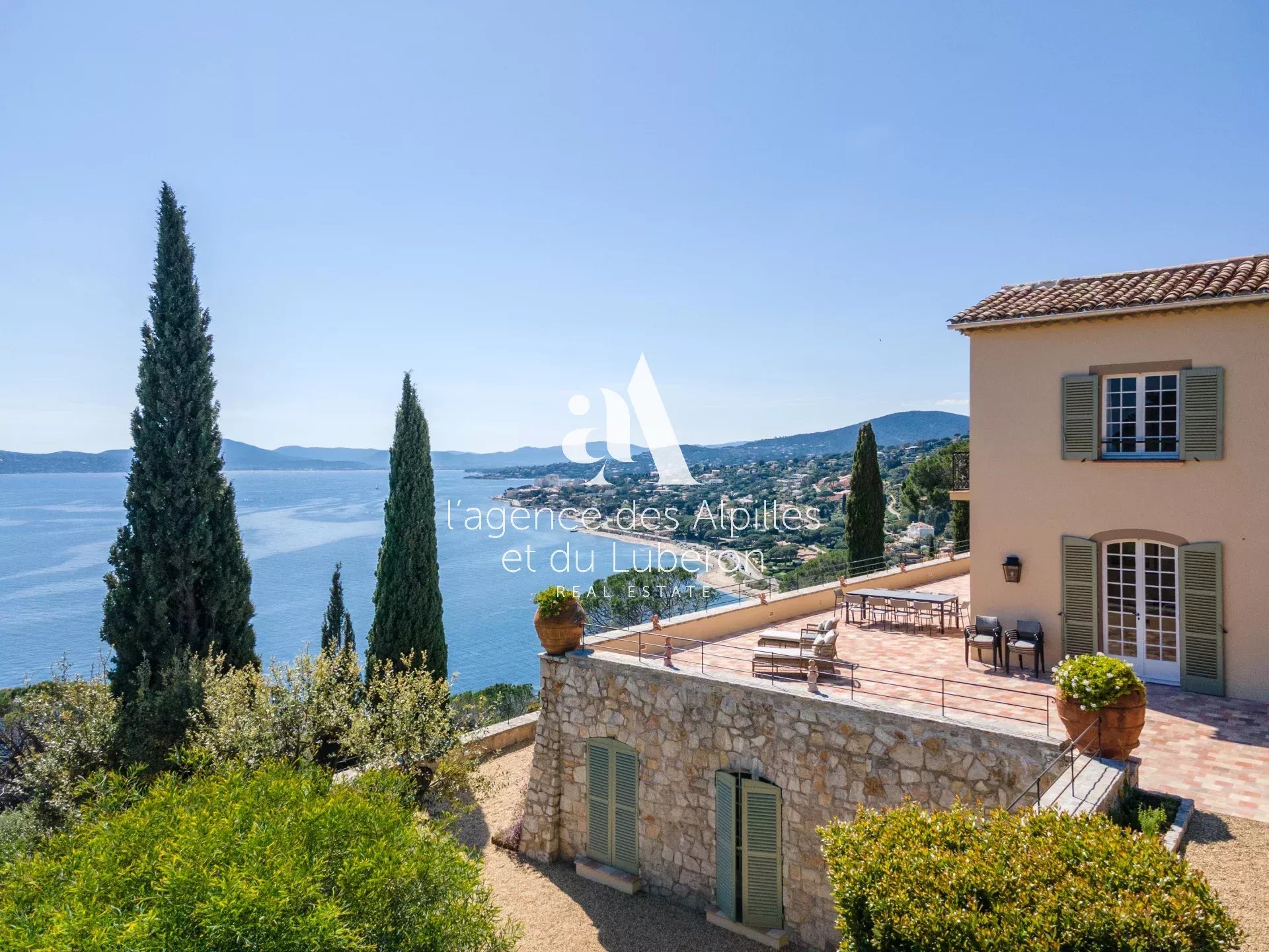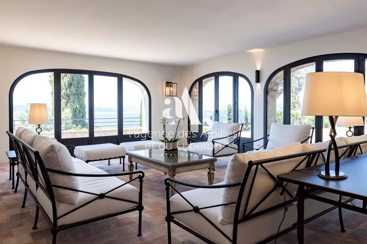 Villa Toscane, vue mer imprenable pour cette propriété exceptionnelle, idéalement située à quelques minutes en voiture de la plage et 20 minutes de Saint-Tropez.