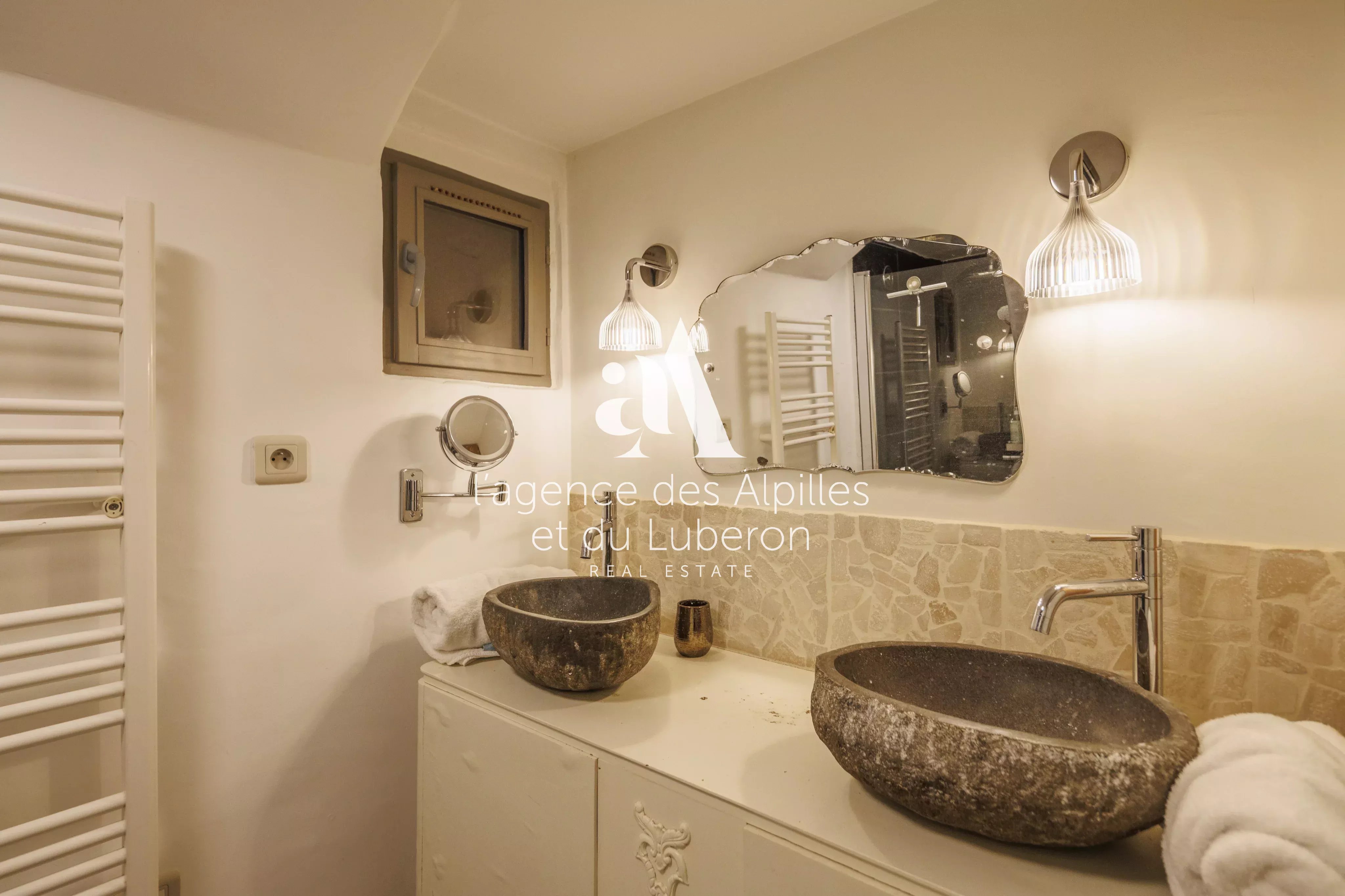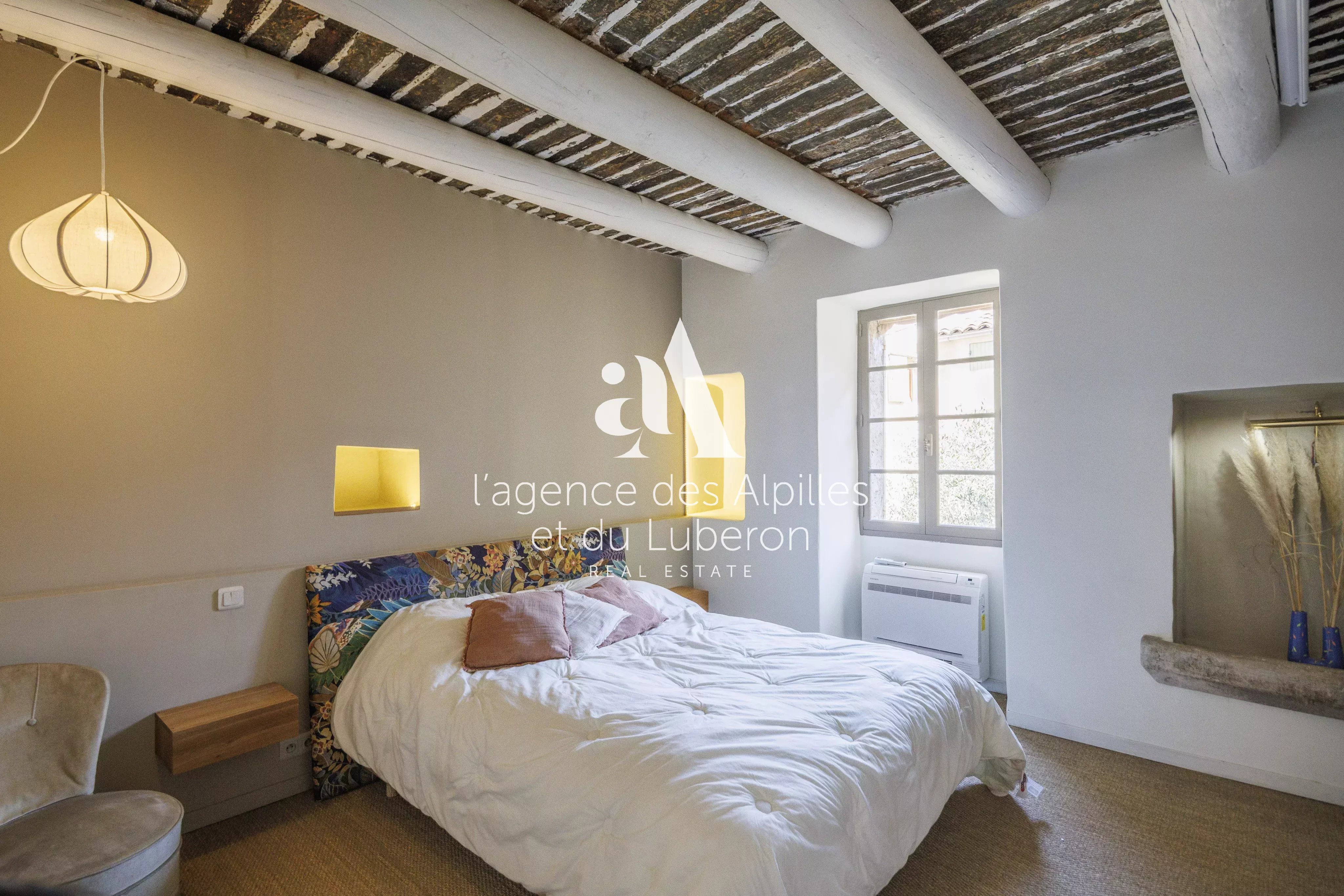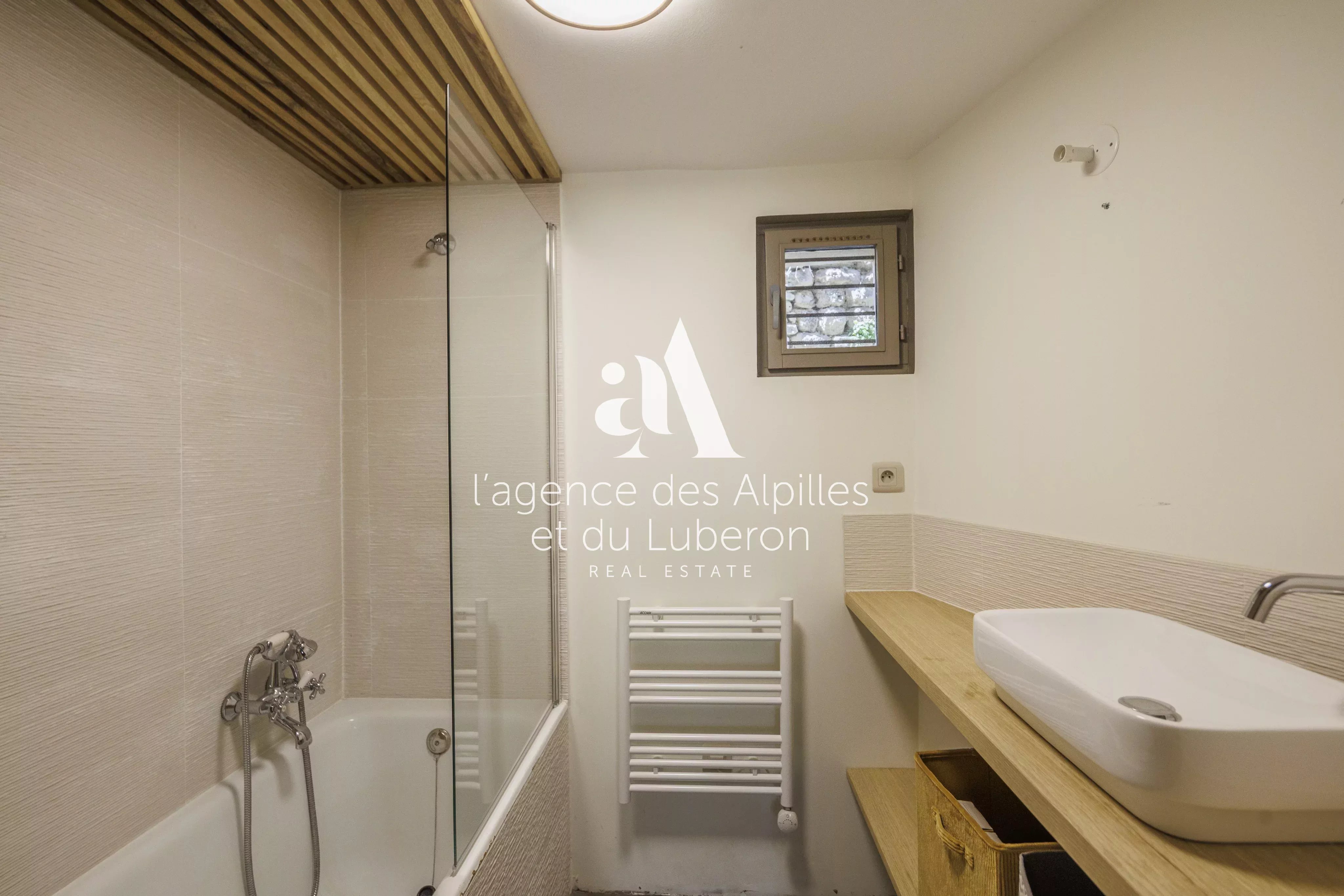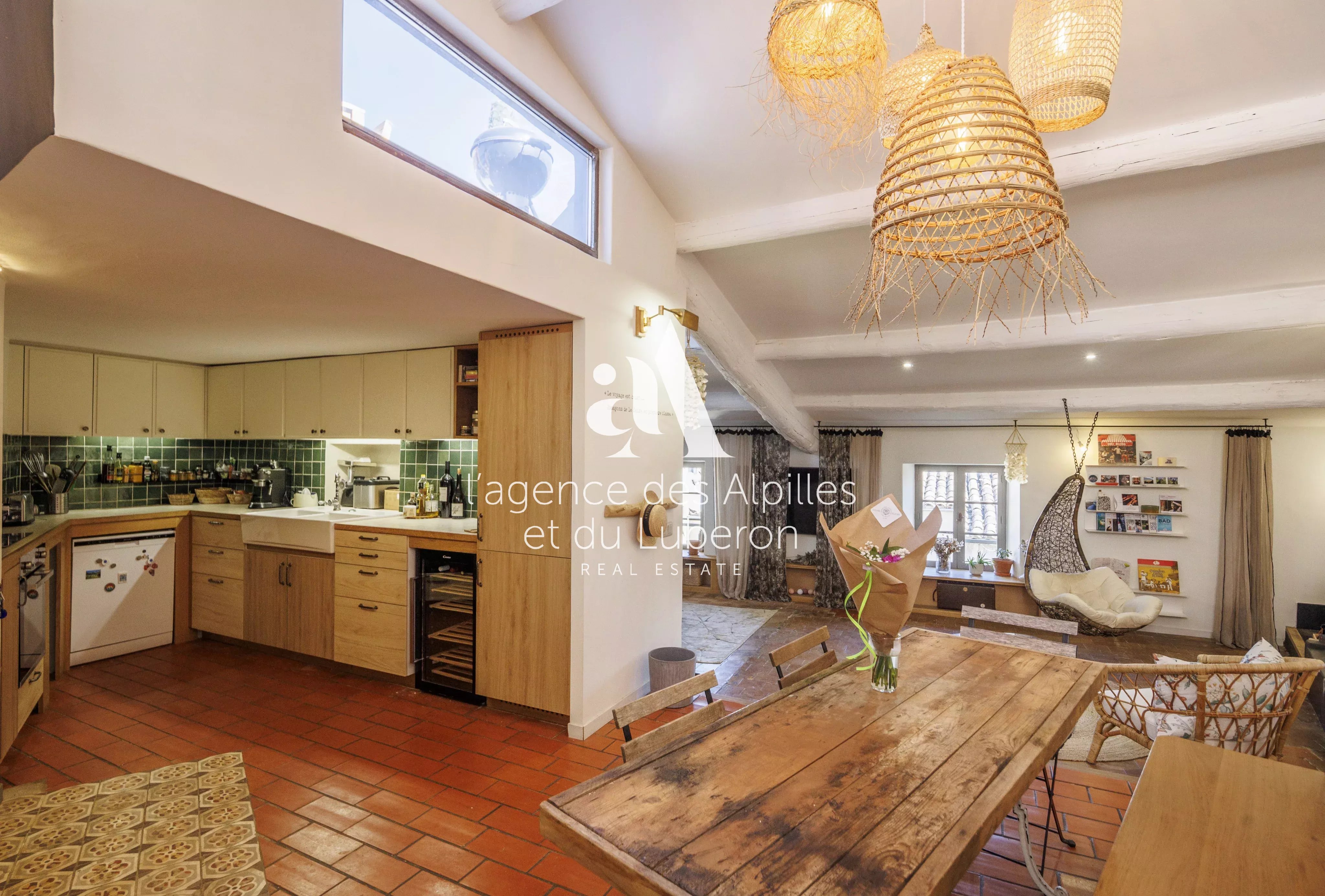 À vendre à Lourmarin. Idéalement situé au cœur du village, ce bel appartement de 130m2 hab entièrement rénové avec goût offre une luminosité remarquable. Il se compose de deux chambres, chacune avec sa salle de douche/bains, ainsi qu’une agréable pièce de vie, d'une cuisine équipée, une salle à manger, un salon cheminée.