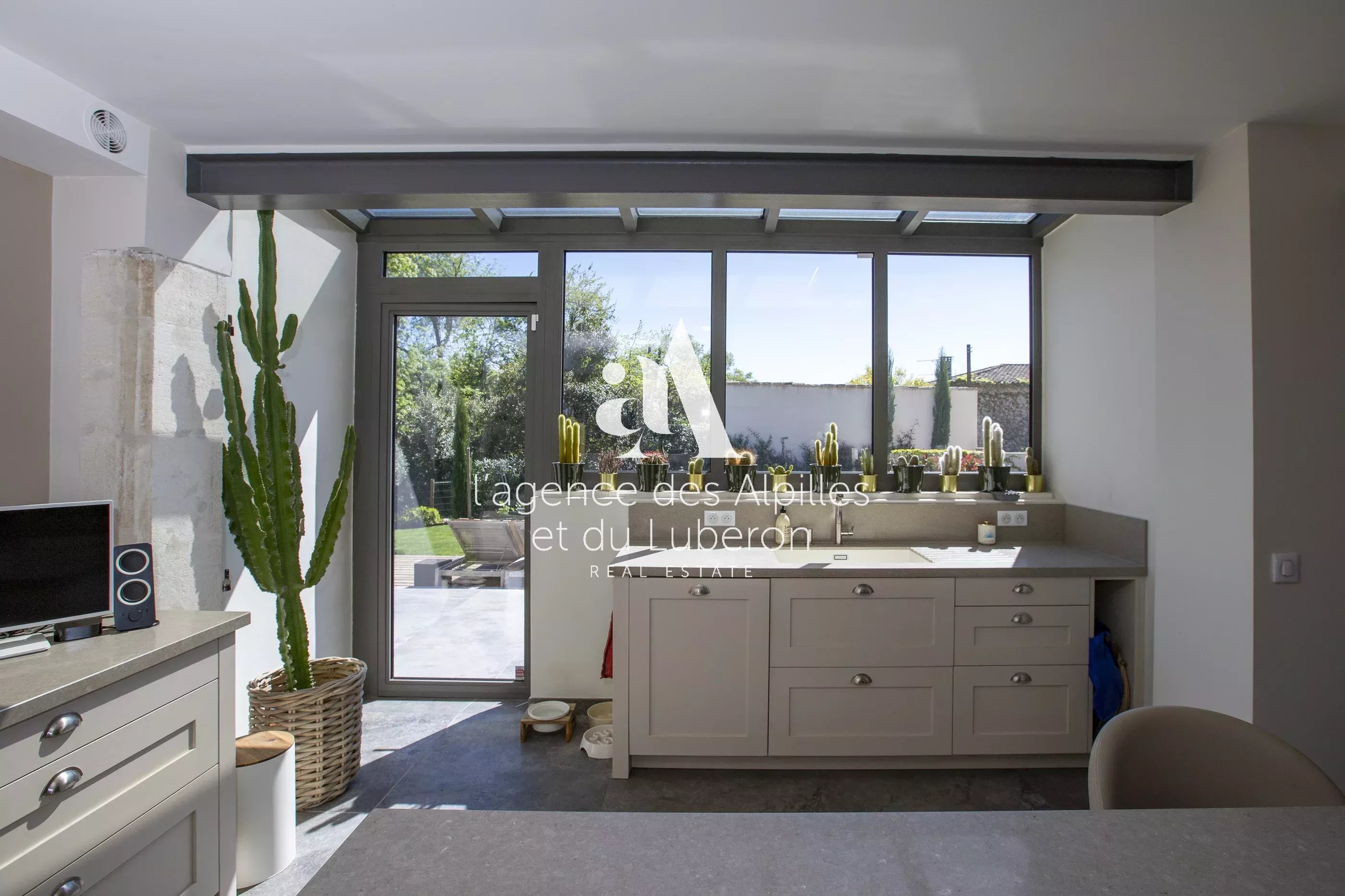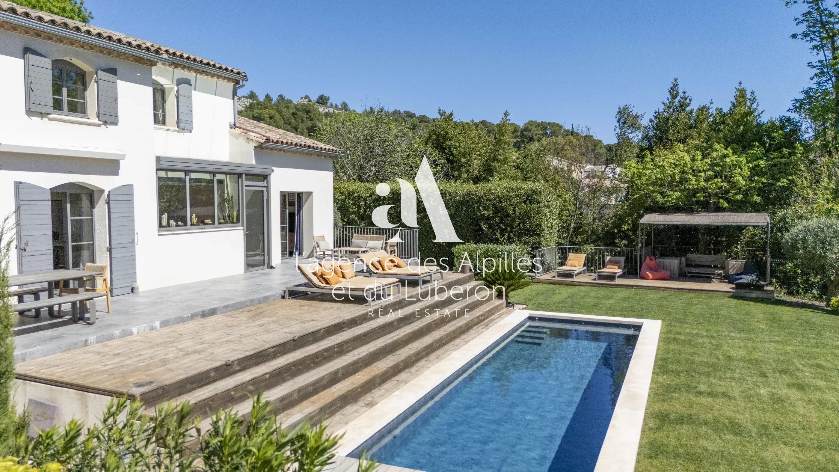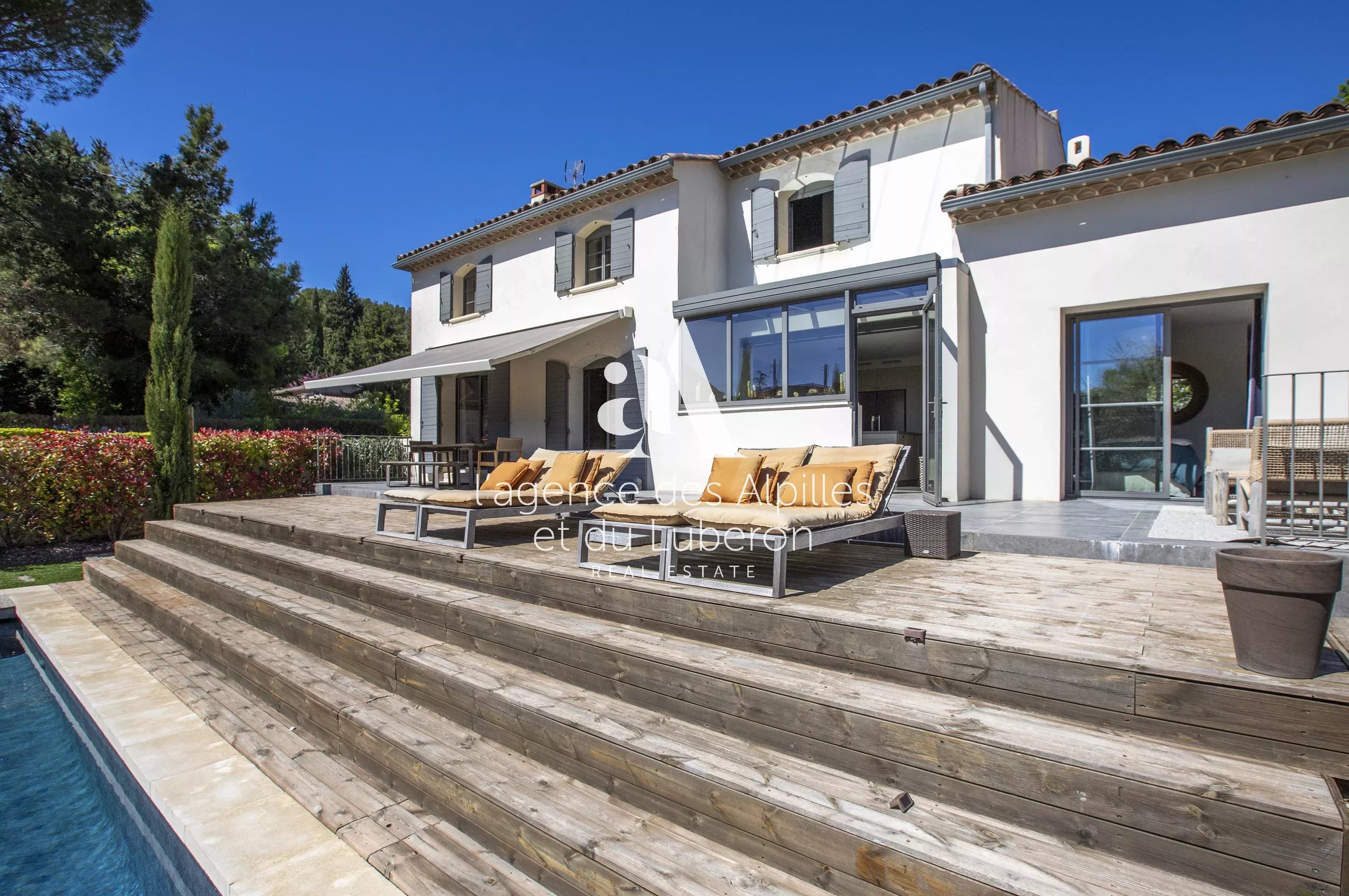 À proximité du centre village, dans un environnement sans nuisances avec commerces et restaurants à pied maison entièrement rénovée avec des matériaux de qualité d'environ 215 m2 hab. composée de 4 chambres, dont une grande chambre de maître au rez-de-chaussée avec son dressing et salle de bains,1 autre avec salle d'eau privative et de 2 chambres à l'étage qui se partagent une salle de bains, vaste séjour cathédrale avec cheminée, salon TV, cuisine équipée haut de gamme, cave à vin et garage. Le parc paysager de 1 100 m2 déploie de nombreux endroits propices à la détente et une piscine chauffée (11 x 3,5 m). L'ensemble, chic, élégant, harmonieux et pratique promet un séjour et une détente maximale dans une maison à l'abri des regards. Les prestations sont soignées et le lieu est charmant.