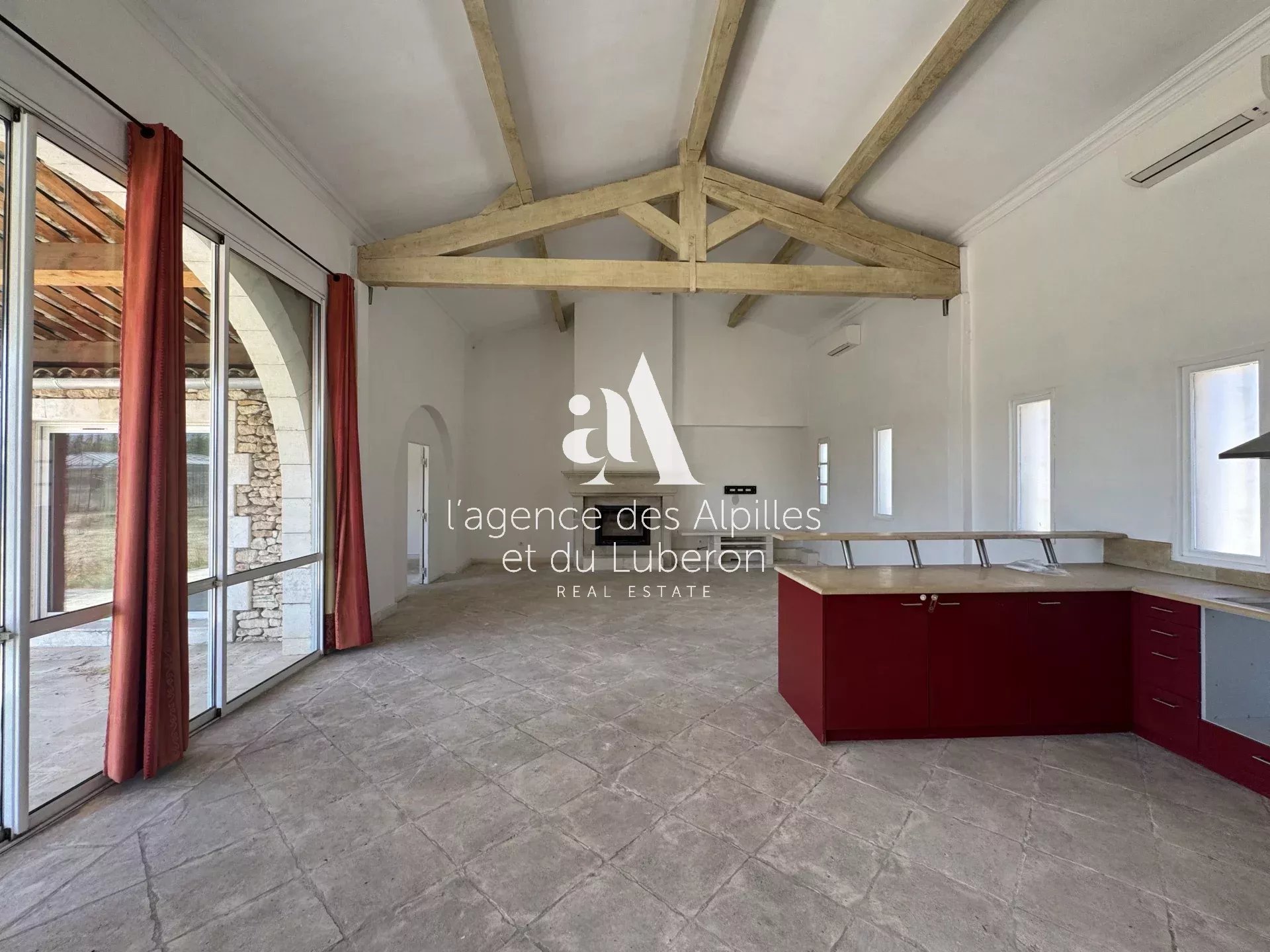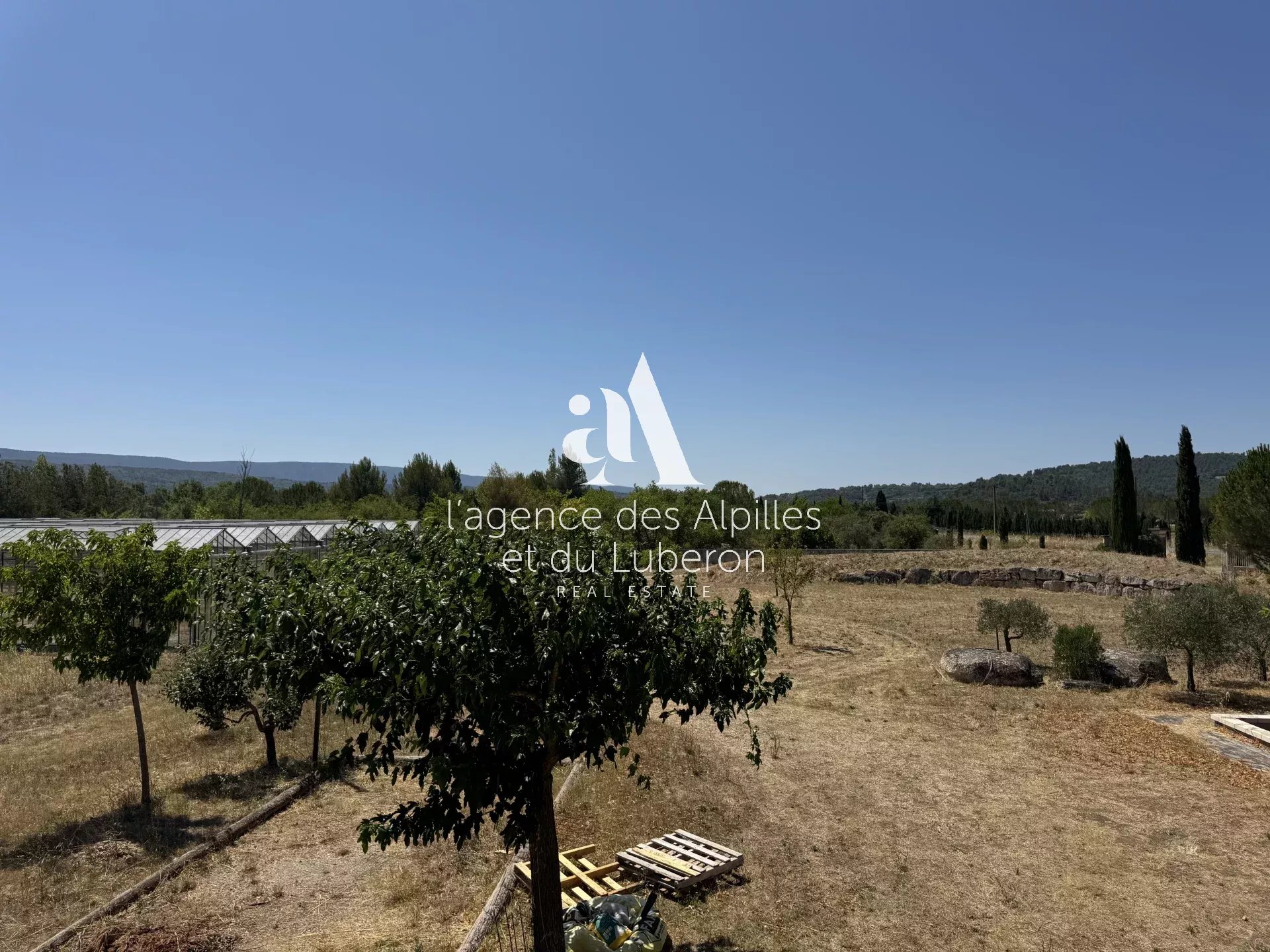 À vendre à Roussillon. Située entre les villages classés du Luberon et proche de toutes les commodités et des axes routiers, cette maison d’env. 130 m² habitables offre de beaux volumes. Elle se compose d’une cuisine ouverte sur un vaste séjour avec une cheminée et de grandes baies vitrées, d’un bureau, de deux chambres dont une à l’étage avec terrasse privative et vue dégagée, d’une terrasse couverte d'env.23m2 au rez-de-chaussée, d’une buanderie et d'une serre de 25x25m pour les amateurs de jardinage. À l’arrière de la maison, un appartement indépendant d’env. 50 m² permet d’envisager un revenu locatif ou d’accueillir famille et amis. Le tout est implanté sur un terrain de 9240 m² avec bassin de 5x1M.